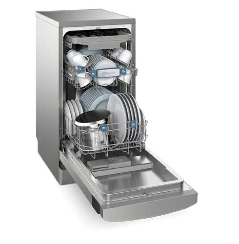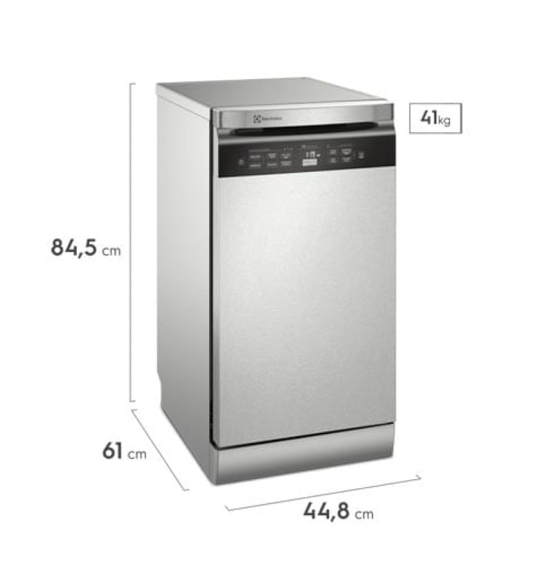 Pré-Lavagem, Filtro de Resíduos, Adia Lavagem, Painel Digital e Temperatura da Água de até 70ºCDestaquesEconomia de Água e TempoUma lava louça consome 9,5L a cada ciclo. A mesma quantidade de louças lavada a mão consome 90L. Economize água e tempo para a realização das tarefas.Higienizar ComprasSuas compras agora limpas de forma prática e eficaz, dispensando o uso de grandes quantidades de produtos de limpeza e da dependência de mão-de-obra para uma higienização mais profunda dos produtos.Higienizar Louça 70°CCom essa função ativada, a lava louças utiliza água em altas temperaturas, que podem chegar até 70°C, oferecendo alta performance e maior higienização.Programa Inteligente/Auto SenseIntelligent sensor- identifica o nível de sujeira das louças e programa automaticamente o melhor ciclo de lavagem.Display Digital com Controle do TempoCom recurso exclusivo Electrolux que permite que você saiba o tempo da lavagem e quanto falta para finalizar o ciclo. Extra SecagemO último enxágue é feito com água em maior temperatura par que as louças fiquem mais quentes ao final do ciclo e sequem de maneira mais eficiente.Cesto de Talheres RemovívelO cesto de talheres pode ser removido para facilitar o carregamento.PainelO design do painel oferece modernidade para a cozinha e acilidade na hora de limpar.Programa Adiar InícioComodidade para programar o início do ciclo para o momento que quiser e adiá-lo quando necessário, de acordo com sua necessidade.Cesto Intermediário Ajustável em Duas PosiçõesMais flexibilidade para o carregamento. Suas louças mais organizadas devido ao ajuste em duas posições, além de fornecer a melhor visualização do espaço interno.Função Pré-LavarIdeal para pouca quantidade de louça. Enxagua e retira o excesso de sujeira sem deixar cheiro, permitindo que você acumule louça para usar um ciclo completo.Função Trava PainelEvita que seu programa seja alterado através da opção de travar, evitando o acionamento indevido, garantindo maior segurança para sua família.Programa 30 MinutosSe quiser acelerar o ciclo, selecione o Programa Express 30’, ideal para utensílios pouco sujos.CaracterísticasTipo: PisoCapacidade: 10 serviçosProgramas: 07 (Pré-lavagem, Express 30, pesado turbo, delicado, dia a dia, higienizar compras, higienizar 70°)Pré-Lavagem Filtro de ResíduoPainel Digital Dispenser de Sabão: Líquido secanteSensor Detector do Nível de Sujeira Função Adia Início da Lavagem Trava de Segurança Especificações TécnicasModelo: LL10XCor: Porta InoxPotência: 1250 WTemperatura da Água: 70°CFrequência: 60 HzVoltagem: 110V / 220V (não é bivolt)EAN: 7909569346549 (110V) / 7909569346563 (220V)Garantia: 12 mesesDimensões e PesoDimensões do produto sem embalagem (AxLxP): 845x448X610 mmDimensões do produto com embalagem (AxLxP): 890X495X672 mmPeso do produto sem embalagem: 41,0 kgPeso do produto com embalagem: 45,0 kgItens Inclusos01 Lava-louças01 Mangueira 1500mmManual de InstruçõesServiço de Instalação e Orientação de UsoPara sua comodidade e segurança, a Fast Shop dispõe do serviço de Instalação e Orientação de Uso*. Agendamos o serviço para você, executamos a instalação com equipes próprias especializadas e autorizadas pelo fabricante, ensinamos como utilizar os produtos da melhor forma e temos uma área de qualidade para acompanhar e garantir que tudo dê certo. É rápido e fácil. Você pode contratar o serviço com o nosso Televendas pelo tel.: 3003-3278 ou em uma de nossas lojas. Consulte os valores e regiões atendidas.* Verifique com nossos vendedores se a Fast Shop realiza a instalação desse produto.
