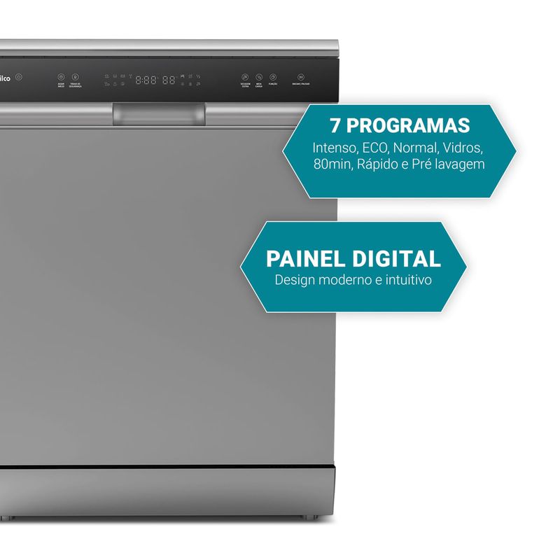 Tranquilidade e modernidade na sua casa com a Lava Louças Philco PLL14ID Digital 14 Serviços. Tudo o que você precisa para facilitar a sua rotina de limpeza na cozinha! São 7 programas de lavagem e 14 serviços, ou seja, lava louças de 14 jogos por ciclo de lavagem. A lavadora de louças possuí filtro de resíduos que retém as partículas grossas de alimentos para evitar que elas bloqueiem os tubos ou componentes internos. Tudo isso com trava do painel e sistema de proteção contra transbordamento que garante maior segurança para toda a família. Lava Louças Philco PLL14ID Digital 14 Serviços, design com acabamento em inox que combina com qualquer ambiente! • Capacidade para 14 serviços • Painel eletrônico, com trava de segurança • Possui 7 programas (Intenso, Médio, ECO, Vidros, 90min, rápido e Autolimpeza ou Talheres) • Funções timer (adiar o início), meia carga e secagem extra • Sistema de filtragem • Sistema de segurança contra transbordamento • Cestos de talhares • Interior em aço inox • Compartimento para detergente e líquido secante.