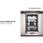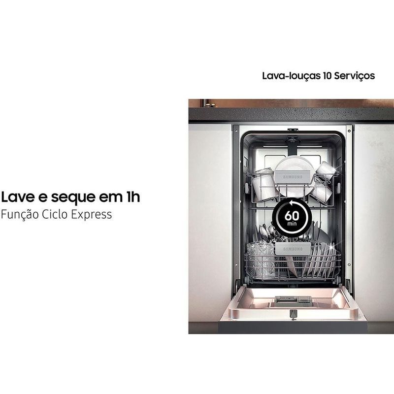Para as famílias que desejam economizar tempo e esforço na rotina domésticas a Samsung traz a Lava-Louças DW50C6070FG/AZ com 10 serviços Black Inox. Ela oferece uma limpeza silenciosa, com níveis de ruído baixos para que você possa utilizá-la a qualquer hora do dia sem se preocupar com o barulho. Moderna e eficiente ela traz Funções especiais como: a Higiene, entregando uma limpeza mais profunda, a Ciclo Auto que é ideal para quem deseja economizar tempo e energia elétrica, a Ciclo Express perfeita para quando você precisa de louça limpa em pouco tempo e a Meia Carga que permite lavar um número menor de louças sem desperdiçar água ou energia, assim você não precisa acumular muitas peças.Além disso, é simples e fácil de usar pois traz um amplo display de LED e oferece mais segurança para toda a família, já que vem com trava à prova de acidentes. E mais! O acabamento resistente a impressões digitais garante que sua cozinha fique sempre com uma aparência impecável. E sua cor em Black Inox traz o toque de modernidade que o ambiente merece!É a lavadora de louças da Samsung que vai revolucionar a sua casa, proporcionando mais tempo livre para você aproveitar a vida!