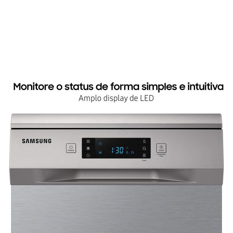 Para você que procura praticidade e eficiência na hora de lavar louças, a Samsung traz a Lava-Louças DW50C6070FS/AZ Inox com 10 Serviços. É o eletrodoméstico ideal para famílias que desejam economizar tempo e esforço na rotina doméstica.Ela conta com a limpeza silenciosa, com níveis de ruído baixos, assim você pode utilizá-la a qualquer hora do dia sem se preocupar com o barulho. Além disso, ela possui a função Higiene, entregando uma limpeza mais profunda. Tem ainda as funções: Ciclo Auto que é ideal para quem deseja economizar tempo e energia elétrica, Ciclo Express perfeita para quando você precisa de louça limpa em pouco tempo e a Meia Carga que permite lavar um número menor de louças sem desperdiçar água ou energia, assim você não precisa acumular muitas peças.E mais! O amplo display de LED torna a programação da lava-louças simples e intuitiva e, o acabamento resistente a impressões digitais, garante que sua cozinha fique sempre com uma aparência impecável. E ela ainda oferece mais segurança para toda a família, pois possui trava à prova de acidentes. Adquira agora mesmo a Lavadora de Louças da Samsung e aproveite todas as vantagens deste produto de alta qualidade.
