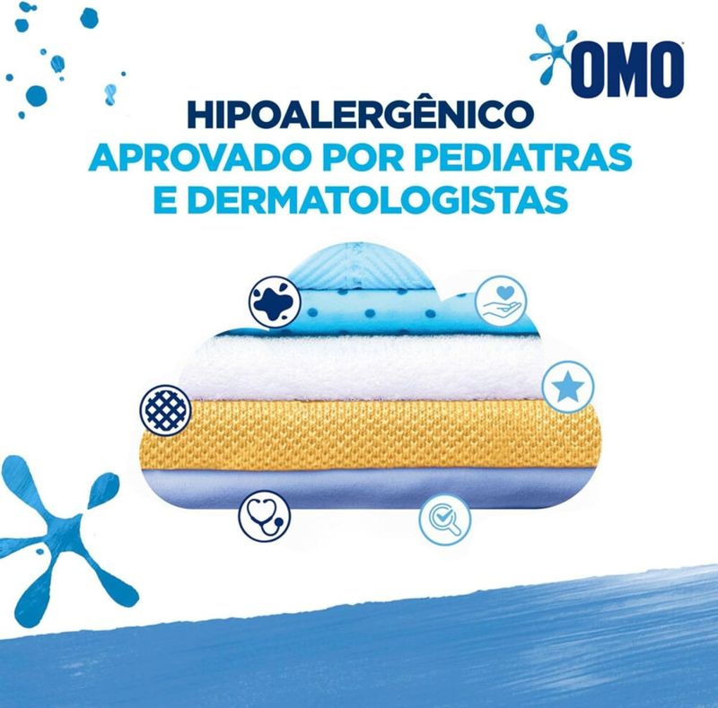 Sabão Líquido OMO Puro CuidadoO Sabão Líquido OMO Puro Cuidado foi especialmente formulado para oferecer uma limpeza eficaz das roupas enquanto cuida das peles mais delicadas. Com um toque de aveia, este produto alia tecnologia a um carinho especial para aqueles que necessitam de cuidados adicionais.Fórmula Hipoalergênica e Extra SuaveA nova fórmula do OMO Puro Cuidado é hipoalergênica e possui um pH balanceado, tornando-se ideal para peles delicadas, como as de bebês. Esta característica faz com que o produto seja recomendado por pediatras e dermatologistas, assegurando que as roupinhas dos pequenos sejam tratadas com todo o cuidado necessário.Eficácia Contra ManchasApesar de sua suavidade, o OMO Puro Cuidado é poderoso no combate às manchas mais difíceis, incluindo aquelas que surgem durante a introdução alimentar dos bebês, como manchas de mamão, suco de tangerina e papinha de cenoura. Isso garante que as roupas fiquem limpas e sem marcas indesejadas.Sustentabilidade e Meio AmbienteComprometido com a sustentabilidade, o OMO Puro Cuidado contém ativos biodegradáveis e é formulado para economizar água, necessitando de apenas um enxágue por lavagem. Além disso, sua garrafa é feita com plástico reciclado de outras garrafas, sendo 100% reciclável e incluindo no mínimo 35% de plástico reciclado pós-consumo (PCR). A escolha por OMO é uma escolha por um mundo melhor, contribuindo para a transformação positiva do meio ambiente.Economia e RendimentoCom uma embalagem de 3 litros, o OMO Puro Cuidado rende até 30 lavagens. Apenas uma tampa é suficiente para lavar uma máquina cheia, especialmente para máquinas de abertura superior. Para outros tipos de máquina, recomenda-se ajustar a dosagem conforme as instruções do fabricante.Aprovação de Marcas ConsagradasO uso do OMO Puro Cuidado é recomendado por marcas renomadas como Brastemp e Consul, evidenciando sua confiabilidade e eficácia.Ao escolher OMO, você não está apenas cuidando das suas roupas e da sua pele, mas também fazendo uma escolha consciente pelo meio ambiente. Juntos, sOMOs a transformação positiva que o planeta precisa.Sobre este itemO Sabão Líquido OMO Puro Cuidado é imbatível nas manchas da introdução alimentar*, cuidando das peles mais delicadas e do meio ambienteA nova fórmula hipoalergênica e extra suave com pH balanceado, para peles delicadas**, é perfeita para a lavagem das roupinhas do bebêLava roupas que combate manchas difíceis dos tecidos, imbatível até nas manchas da introdução alimentar*Este Sabão Líquido OMO Puro Cuidado com toque de aveia*** e sem corantes é aprovado por pediatras e dermatologistasSabão Líquido OMO de 3 L é poderoso na limpeza e rende 30 lavagens, apenas uma tampa lava uma máquina cheia****Garantia 3 mesesImagens Ilustrativas