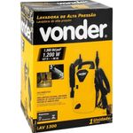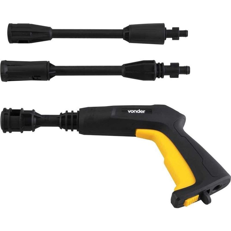 Lavadora de Alta Pressão Doméstica Vonder LAV 1300 1300 LBF 1200W 390 LH Amarelo Preto 110VFacilite a limpeza do dia a dia com a lavadora de alta pressão Vonder LAV 1300, ideal para uso doméstico em diversas superfícies. Com pressão máxima de 1.300 lbf/pol² e vazão nominal de 300 L/h, ajuda a remover sujeiras mais difíceis usando menos água. O bico ajustável permite alternar entre jato leque e concentrado, enquanto o sistema stop total desliga o motor ao soltar o gatilho, contribuindo para economia de água e energia. É indicada para limpeza de pisos, carros, motos, bicicletas, muros e outras áreas externas da casa. A tradição da Vonder em ferramentas e equipamentos agrega confiabilidade e praticidade ao uso diário.Vantagens e diferenciais Alta pressão de trabalho: 1.300 lbf/pol² para remoção eficiente de sujeira. Economia de água: vazão nominal de 300 L/h reduz desperdícios no uso doméstico. Bico ajustável: escolha entre jato leque ou concentrado conforme a limpeza. Sistema stop total: desliga o motor ao soltar o gatilho, economizando energia. Acessório para detergente: reservatório externo que facilita a aplicação de sabão. Transporte facilitado: alça integrada para movimentar a lavadora com praticidade.Especificações Técnicas Marca: Vonder Modelo: LAV 1300 Tipo de produto: Lavadora de alta pressão doméstica Tensão: 110 V Potência: 1.200 W Pressão máxima: 1.300 lbf/pol² (90 bar / 9 MPa) Pressão nominal: 870 lbf/pol² (60 bar / 6 MPa) Vazão nominal: 300 L/h (5 L/min) Vazão máxima: 390 L/h (6,5 L/min) Tipo de motor: Universal Nível de ruído: 75 dB(A) Comprimento da mangueira: 3 m Comprimento do cordão elétrico: 5 m Dimensões (A x L x P): 37 x 30 x 18 cm Peso aproximado: 4,2 kgObservações importantes As cores do produto podem variar de acordo com a calibração e resolução do monitor ou tela utilizada. As imagens são meramente ilustrativas. O produto real pode apresentar pequenas variações de tonalidade, formato ou acabamento. Verifique a voltagem informada no título do produto antes de efetuar a compra.