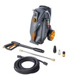 A lavadora de alta pressão WAP 5100 Turbo é a melhor opção para limpar sujeiras pesadas e profundas de grandes áreas com rapidez e agilidade. Com motor de indução, vazão máxima de até 550 L/h, bico turbo, potência de até 2500W e pressão máxima de até 2300 PSI, é o equipamento de uso frequente perfeito para a remoção de níveis incrustados de sujeira nos mais diversos tipos de pisos e superfícies. É uma máquina compacta, durável, robusta e super prática para transportar com alças de alumínio retrátil e emborrachada. A WAP 5100 Turbo cabe, inclusive, na caixa de transporte de motocicletas. Possui um exclusivo porta-acessórios que ajuda na organização dos componentes do produto e rodas que facilitam o transporte.A lavadora de alta pressão WAP 5100 Turbo conta com uma bomba axial com cabeçote de alumínio e pistões em aço inox, que garantem mais durabilidade ao produto. Além disso, vem com cabo elétrico de 5 metros e mangueira de alta pressão com trama de aço de 10 metros que permitem cobrir uma grande área sem precisar locomover a máquina. Equipado com gatilho com trava de segurança, bicos de 0°,15°, 25° e 40° além do sistema stop total, que corta o fluxo de água e a energia do motor ao soltar o gatilho, poupando energia e aumentando a vida útil do motor.E, para o trabalho ficar ainda mais fácil e dinâmico, vem equipada com o engate rápido e filtro, para você montar e desmontar a mangueira em um clique, sem a necessidade de usar ferramentas. A lavadora de alta pressão WAP 5100 Turbo é uma excelente máquina para ser usada em empreendimentos como: pequenos mercados, padarias, restaurantes, frutarias, açougues e condomínios.Com a WAP 5100 Turbo você pode chegar muito mais longe.Wap tem que ser da WAP!DADOS TÉCNICOS:TENSÃO: 220VCOR: Cinza com AmareloPOTÊNCIA ELÉTRICA: 2500 WPRESSÃO MÁXIMA: 2300 PSIFREQUÊNCIA: 60 HzMOTOR: InduçãoVAZÃO: 550 L/hCABO ELÉTRICO: 5 MMANGUEIRA: 10 M Trama de açoPESO LÍQUIDO: 18 KgPESO BRUTO: 24,5 KgEMPILHAMENTO MÁXIMO: 4DIMENSÕES DO PRODUTO (CxLxA): 33 x 33 x 92 cmDIMENSÕES DA EMBALAGEM (CxLxA): 51,5 x 45 x 37 cmGARANTIA: 01 ANO (3 meses de garantia legal e mais 9 meses de garantia especial concedida pelo fabricante)CONTEÚDO DA EMBALAGEM: Lavadora de alta pressão 5100 Turbo + Acessórios + Manual de Instruções.