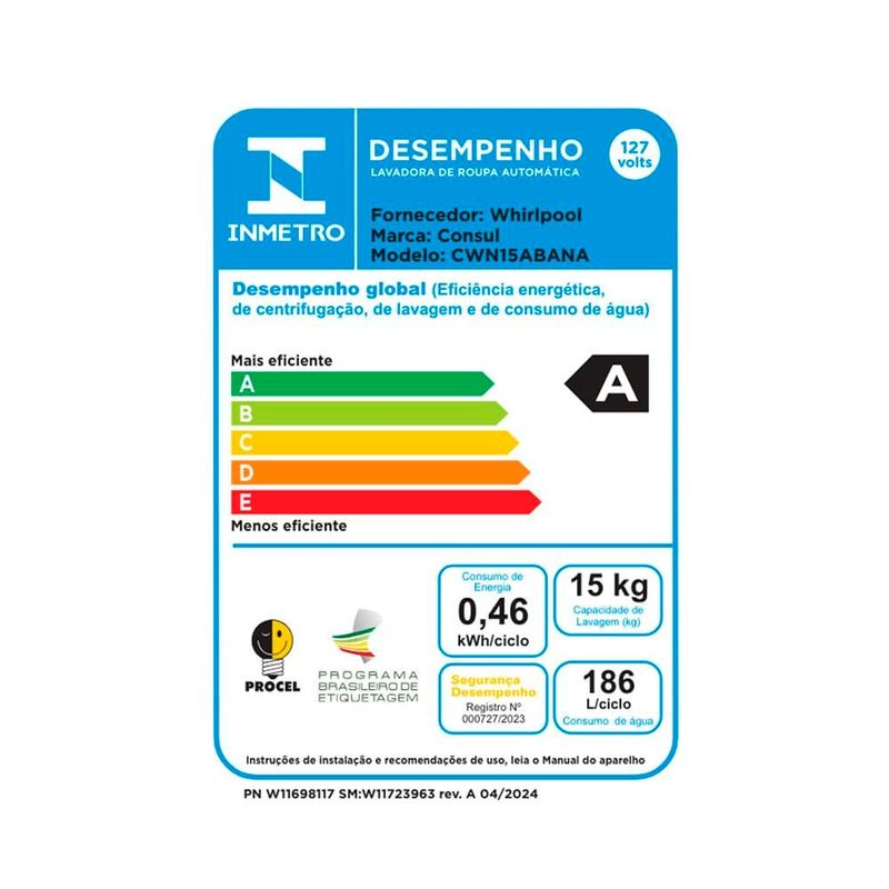 Abertura Superior e Cesto em Inox: moderna por fora e por dentro A Lavadora de Roupas Consul CWN15AB oferece uma experiência prática e eficiente com seu design de abertura superior e cesto em inox. Ela é ideal para famílias que buscam um desempenho confiável e durável em cada lavagem. A resistência e durabilidade do cesto em inox garantem que suas roupas sejam tratadas com cuidado, preservando a qualidade dos tecidos por muito mais tempo. Praticidade e Economia de tempo com a Máquina de 15kg Com uma capacidade de 15kg, esta máquina de lavar é perfeita para lidar com grandes quantidades de roupas em uma única carga. Seja para lavar peças volumosas, como edredons, ou uma grande quantidade de roupas do dia a dia, a Consul CWN15AB está preparada para oferecer a melhor performance. Essa capacidade otimiza sua rotina de lavagens. Modo Eco: mais econômia a cada lavagem O Modo Eco da Lavadora Consul CWN15AB é a solução ideal para quem busca economia em dobro. Com essa função, você pode economizar até 15% de água e até 40% de energia elétrica em cada ciclo de lavagem. Basta selecionar o ciclo desejado, ativar o Modo Eco e aproveitar uma lavagem eficiente e sustentável, sem comprometer a qualidade da limpeza das suas roupas.