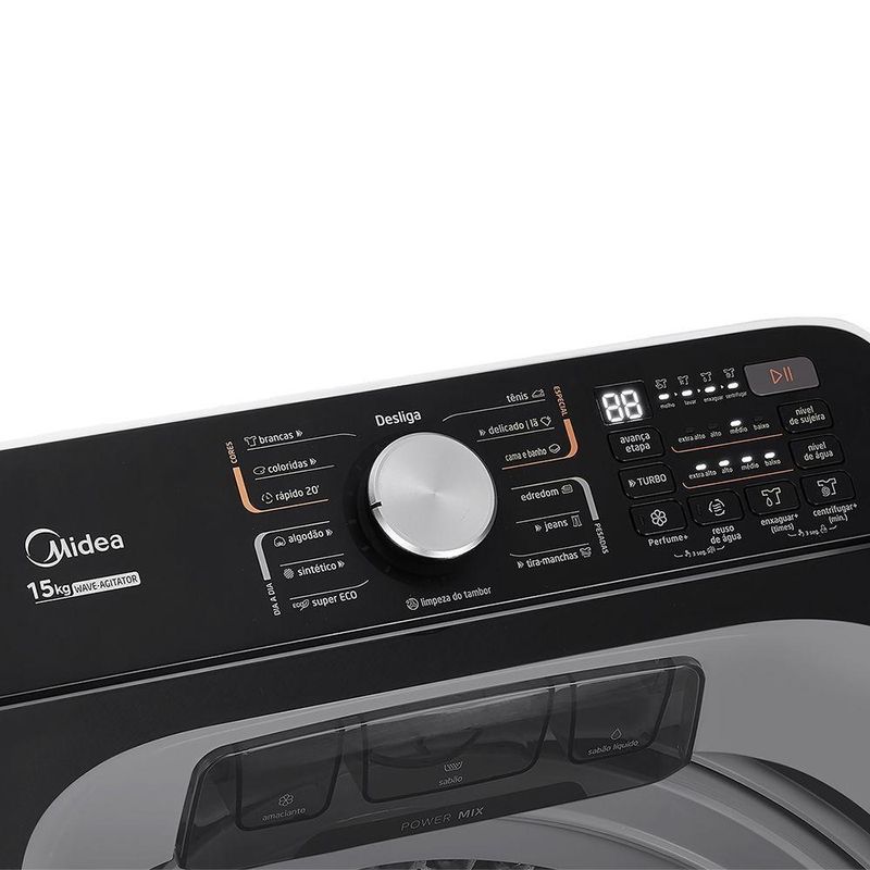 Lavadora de Roupas Midea Wave 15kg Agitador 127V - Alto desempenho, praticidade e economiaA Lavadora de Roupas Midea Wave 15kg com Agitador 127V foi desenvolvida para oferecer alto desempenho, praticidade e economia, sendo ideal para famílias que precisam lavar grandes volumes de roupas com eficiência e cuidado.Com capacidade de 15 kg, ela lida facilmente com peças volumosas como edredons, roupas de cama e banho, além do uso diário. O sensor de peso ajusta automaticamente o nível de água conforme a carga, evitando desperdícios e garantindo mais eficiência no consumo.São diversos programas de lavagem, incluindo ciclos específicos para roupas brancas, coloridas, jeans, tênis, edredom, cama e banho, além das opções Rápido 20’, Super ECO e Tira-manchas, proporcionando flexibilidade para diferentes tipos de tecidos e níveis de sujeira.As funções adicionais elevam a experiência de uso, como Turbo, Perfume+, Enxágue+, Centrifugação+ e Reuso de água, que contribuem para melhor desempenho, economia e cuidado com o meio ambiente. O recurso Silenciar permite desativar os sons do painel, trazendo mais conforto no uso diário, enquanto a trava de segurança garante maior proteção.O cesto em aço inox oferece maior durabilidade e resistência, além de facilitar a limpeza. Com classificação energética A, a lavadora alia potência e eficiência, sendo uma excelente escolha para quem busca desempenho sem abrir mão da economia.Especificações técnicasMarca: MideaModelo: MA512W150AVoltagem: 127VCor: BrancaCapacidade de Lavagem: 15 kgEficiência Energética: AConsumo de Energia Aproximado: 39 kWh/cicloNível de Ruído: 78 dBProgramas de Lavagem: Brancas, Coloridas, Rápido 20’, Algodão, Sintético, Super ECO, Tênis, Delicado/lã, Cama e banho, Edredom, Jeans, Tira-manchas e Limpeza do tambor Sensor de peso: SimFunções: Avançar etapa, Nível de sujeira, TURBO, Nível de água, Perfume+, Reuso de água, Enxágue+, Centrifugação+, Silenciar e Travar Painel de ControleTrava de Segurança: SimFiltro de Fiapos: SimMaterial do Cesto: Aço Inox)Dreno Automático: SimDimensões do Produto Embalado: 68 L x 112,4 A x 70,6 P cmPeso Bruto: 50 kgDimensões: 60,1 L x 105 A x 61,5 P cm Peso: 46kgGarantia: 12 meses