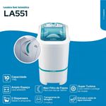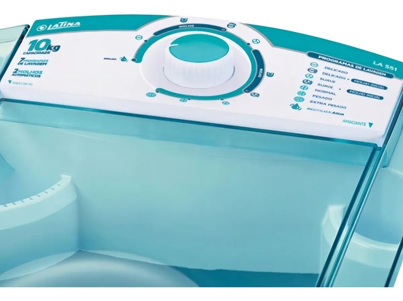 Lavadora de Roupas Semiautomática Latina LA551 10kg – 7 Programas, Entrada e Saída de Água ManuaisA Lavadora Semiautomática Latina LA551 10kg é a escolha perfeita para quem busca eficiência, economia e praticidade no dia a dia. Com capacidade para até 10 kg de roupas, ela entrega alto desempenho sem abrir mão do cuidado com os tecidos.Equipada com 7 programas de lavagem e 2 molhos automáticos, essa lavadora garante a limpeza ideal para diferentes tipos de roupa. A super turbina remove a sujeira com potência e suavidade, preservando os tecidos por mais tempo.Possui entrada e saída de água manuais, ideal para quem prefere maior controle durante o processo. Além disso, conta com motor WEG, referência em durabilidade e eficiência, e pés reguláveis que facilitam a instalação em diversos ambientes.Destaques do produto:Capacidade de lavagem para 10 kgLava até 66 camisetas ou 1 edredom de casal7 programas de lavagem com 2 molhos automáticosMotor WEG: mais potência e durabilidadeSuper turbina: limpeza eficiente sem danificar os tecidos2 dispensers (sabão e amaciante) + Maxifiltro de fiaposEntrada e saída de água manuaisNão centrifuga – ideal para quem prefere secagem naturalPés reguláveis e alça para transporteCor: Branco com verdeVoltagem: disponível em 127V ou 220V (não é bivolt)Classificação energética ADimensões e peso:Altura: 94,5 cmLargura: 53 cmProfundidade: 53 cmPeso: 11,5 kg