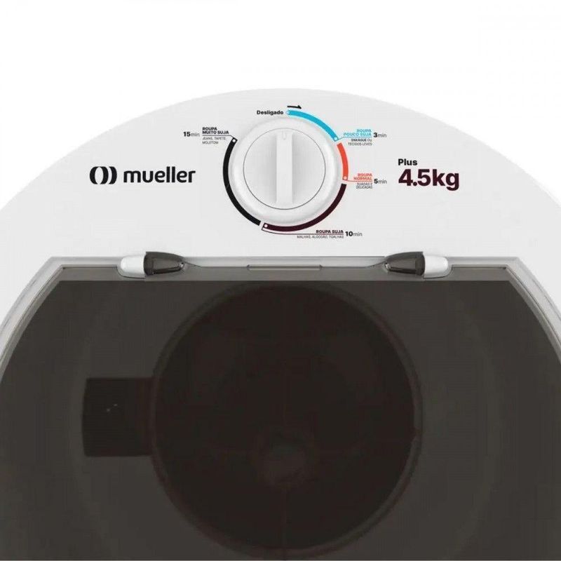 Lavadora Semiautomática Mueller Plus 4.5 Kg Timer Superior 3 Programas Agitador Eficiente Branco 127 VA Lavadora Semiautomatica Mueller Plus oferece grande eficiencia para lavar ate 4,5 kg de roupa. Possui timer superior manual com 3 programas que indicam as pecas adequadas e o tempo de lavagem. Seu sistema de lavagem por agitacao e muito eficiente na lavagem das roupas muito sujas. Sua peneira para pequenos objetos impede que moedas e botoes sejam escoados junto com a agua. A Plus possui classificacao A pelo Inmetro e selo Procel, de produto que consome menos energia, comprovando seu desempenho superior. Confira!Especificacoes Tecnicas: Lavagem por agitacao zigue-zague Timer superior com 3 programas Tampa transparente Peneira para pequenos objetos Agitador eficiente Peneira: impede a passagem de pequenos objetos no escoamento da agua Mangueira de entrada de agua: pode ser instalada direto na torneira Tampa transparente: permite acompanhar a lavagem Lavagem por agitacao zigue-zague: Mais eficiencia na lavagem Timer superior com 3 programas: Diferentes programas para melhor lavageme Agitador eficiente: Formato que proporciona uma lavagem mais homogenea Dimensoes do Produto: Altura: 76,5 cm Largura: 57,0 cm Profundidade: 60,0 cm Peso: 17 kg Garantia do Fornecedor de 12 Meses.