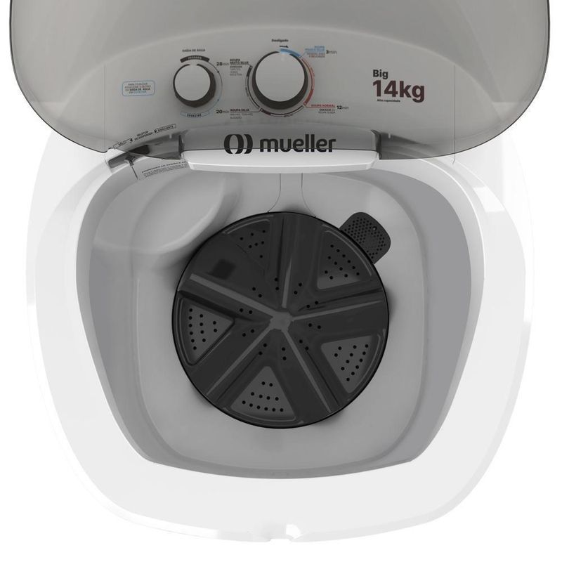 Lavadora Semiautomática Big 14kg 220v Branco 220vA Lavadora Semiautomática Big 14 Kg Preta é ideal para que busca alta capacidade de lavagem. Ela é uma lavadora semiautomática, ou seja, lava e enxágua, mas não centrifuga.Possui um sistema de saída de água automática, onde você controla a saída da água pelo painel e você pode deixar a mangueira de saída de água diretamente no ralo. Conta com filtro para fiapos por coluna dágua garantindo que toda a água no processo de lavagem passe pelo filtro, eliminando os indesejáveis fiapos. No fundo da cuba possui uma peneira para pequenos objetos, garantindo que nenhum objeto fique preso no batedor. Smart Wave: Design na cuba que proporciona alta eficiência de lavagem. Possui dispenser para sabão em pó ou líquido e amaciante com medidor e seletor. Timer com 7 programas que indicam o tempo de lavagem para suas peças. Ciclo lavagem de edredom, com capacidade para lavar até edredons King Size. Possui classificação A pelo INMETRO atestando economia de energia e água. INFORMAÇÕES TÉCNICAS Altura (cm): 96cm Largura (cm): 57cm Profundidade (cm): 58cm Peso (Kg): 11,2Kg Tipo: Semiautomática Abertura: Superior Capacidade de Lavagem: 14Kg Capacidade de água na cuba - nível máximo (litros): 112,5 L Consumo de energia - ciclo normal água fria (kW/h): 0,11kW/h Consumo de água por ciclo (litros/ciclo): 172 L Entrada de Água: Manual Saída de Água: Manual - com controle no painel Enxágue: Manual Potência 127V: 380 Watts Potência 220V: 395 Watts Gabinete: Plástico especial Sistema de Lavagem: Turbilhonamento Eficiência de lavagem: 0,80 IMPORTANTE Certifique-se de selecionar a ..:VOLTAGEM COMPATÍVEL:.. com as tomadas da sua residência, caso a voltagem escolhida na finalização do pedido estiver incorreta o produto não funcionará. A Lavadora Big sai da fábrica desmontada, mas não se preocupe: a montagem é muito simples. Basta seguir as orientações do passo a passo contidas na caixa do produto. Com rotação: Não | Programas: Roupa Muito Suja: Lavagem super pesada 23min, Lavagem pesada 21min; Roupa Normal: Lavagem rápida 12min, Lavagem delicada 10min; Roupa Pouco Suja: Lavagem curta/enxágue 2min. | Eficiência de lavagem: 0,80 | Tipo de secagem: Não se aplica | Capacidade de Lavagem (Kg): 14Kg | Tipo: Semiautomática | Temperatura de água: Não se aplica | Níveis de Água: 0 | Velocidade de rotação: Não se aplica | Tipo de controles: Mecânico | Largura (cm): 57cm | Numero de Programas: 4 | Comprimento: 58cm | Marca: Mueller | modelo: Lavadora Big 14Kg | Peso (Kg): 11,2 Kg | Enxágue: Manual | Abertura: Superior | Tipo de tela: Botões de acionamento manual | Gabinete: Plástico especial | Altura (cm): 96cm | Capacidade de Secagem (Kg): 0Kg | Quantidade de níveis de temperatura: 0 | Cor: Branco | É lavadora e secadora: Não Cor: Branco Voltagem: 220V