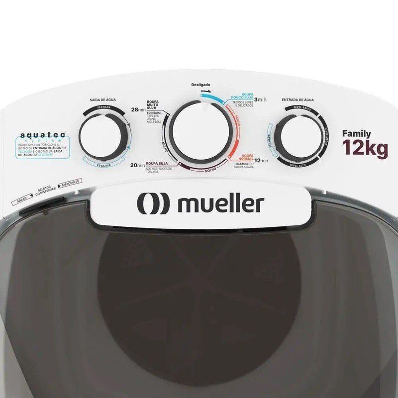 Lavadora Semiautomática Family Com Aquatec 12kg Branca 220vLavadora Semiautomática Family com Aquatec 12kg Branca 220V -Características Gerais do Produto: - Abertura: Superior - Capacidade de água na cuba - nível máximo (litros): 127 Litros - Capacidade roupa seca: Até 12 Kg - Classificação eficiência energética: A - Consumo de água por ciclo: 189 Litros - Consumo de energia - ciclo de lavagem normal: 0,79 kW/h - Detalhes do produto: Exclusivo Aquatec System: Entrada automática de água + 3 níveis de água + controle de saída de água - Dimensões da embalagem (cm): A:84,0 x L:58,0 x P:58,0 - Dimensões do produto (cm): A:96,0 x L:58,0 x P:58,0 - Dispenser: Sabão em pó e amaciante - Filtro de fiapos: Filtros de fiapos na coluna d’água - Funções: Lava e Molho - Níveis de água: 3 Níveis - Pés: Base dos pés desmontável - Peso: Peso líquido: 11,4 kg / Peso bruto: 13,0 kg - Potência total (Watts): 330W (110V) - 335W (220V) - Programas de lavagem: 06 Programas - Saída de água: Botão de controle no painel - Sistema de lavagem: Turbilhonamento - Tensão: 220V; 127V - Tipo de painel: Botões de Acionamento Manual - Modelo referência do produto: 600055025 / 600055026 - Atenção: O plugue do cabo de alimentação de seu produto está em conformidade com a NBR 14136/2002 do Inmetro e deverá ser mantido.Acompanha o produto: - Manual de Instruções - Rede de postos autorizados Garantia: - 12 Meses de Garantia de Fábrica