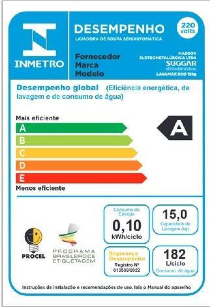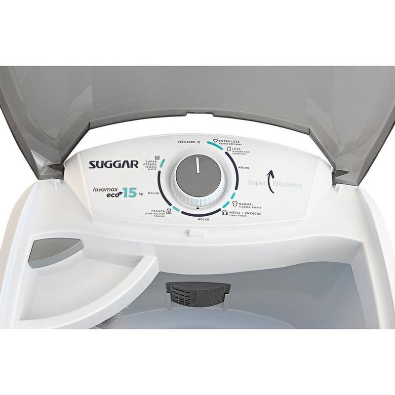 Potência e eficiência para cuidar das suas roupas com o Lavadora Suggar Lavamax Eco 15kg. Feito para grandes volumes de roupa, é a solução perfeita para quem precisa de praticidade, economia e performance. Com 500W de potência, ele conta com o maior batedor da categoria, redesenhado com aletas que proporcionam lavagem supereficiente. A lavadora possui 6 programas de lavagem, dispenser para sabão, 3 níveis de água e filtro cata-fiapos que mantém suas roupas limpas e livres de resíduos. Seu timer com programação de 0 a 28 minutos oferece total controle de tempo e ainda conta com desligamento automático ao final do ciclo. Lava até 15kg de roupas com potência de 500W Batedor com aletas para maior eficiência na lavagem 6 programas de lavagem + 3 molhos Timer de até 28 minutos com desligamento automático Consumo reduzido de 0,10 kWh por ciclo (Classe A) Classificada com nível A de eficiência energética, consome apenas 0,10 kWh por ciclo, oferecendo excelente economia para o seu lar.