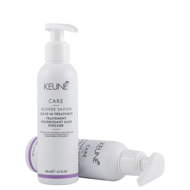 Leave-in Care Blonde Savior Keune 140mlO Blonde Savior Leave-in Treatment é um creme sem enxágue profundamente nutritivo e fortalecedor para tratar cabelos sensibilizados, danificados e descoloridos. Enriquecido com Ácido glicólico e Creatina, ele pode ser usado diariamente no cabelo úmido.O Blonde Savior Leave-in Treatment tem efeito reparador, fortalece os fios por dentro e forma um filme que protege de temperaturas até 230ºC, reduzindo o atrito provocado pelo pente e pela escova e conferindo proteção a ferramentas térmicas. Além disso, ainda garante fios mais macios e hidratados.Com o tratamento completo (shampoo, leave-in e máscara) você garante fios 7x mais fortes, 96% menos quebra e elimina 64% dos danos causados pelo processo de descoloração.Indicação: Cabelos Loiros ou DescoloridosModo de UsarApós lavar os cabelos, seque os fios com a toalha e aplique um ou dois pumps do leave-in. Não enxágue e modele como preferir. Sobre a marca:Desde 1922 nós produzimos cosméticos profissionais para os cabelos, mas somos muito mais do que um fornecedor. Ao se tornar um parceiro da Keune, você se torna também parte da nossa família, uma família que cresce no mundo todo. Somos uma empresa familiar e queremos o melhor para você, seu salão e seu cliente. É por isso que gostamos de fazer negócios com um toque pessoal
