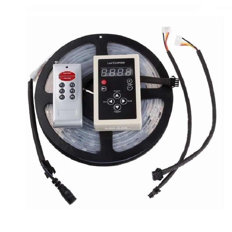 Fita Led Digital Cor 6803 5050 Rgb Prova D'água 133 Efeitos 3DCom 133 padrões de mudança diferentes e mudanças de velocidades,a 6803 RGB digital é ideal para aplicar em sancas de gesso, móveis, casas, apartamentos,salões de festa, igrejas, bares, restaurantes, lanchonetes, etc.Especificação do produto:Alimentação: DC 12V Embalagem padrão: 5 MetrosCor: RGB Multi colorido Proteção: IP67Modelo Chip: SMD5050Número Leds: 150 unidades (30/m)Chip LED: EpistarTipo de tira: SMDTemperatura de trabalho: -20- 60 Graus CTensão de alimentação: DC12VConsumir energia: 2WRealização: Grupo sinal SPI TowFunção de configuração do comprimentoDiversos programas para escolherFunção de memóriaFunção dos painéis de controle remoto:ON / OFF: o botão ON / OFF, ele pode abrir ou fechar levou a qualquer momento.MODE: Play / botão de pausa, pressionar este botão para fazer uma pausa,você pode ver o carinho estática de led.S +: botão rápido velocidade, o menor número é 1S-: botão lento velocidade, existem 100 passo em tudo, o maior número é de 100B +: Programa botão escolhendo, para cima direção existem 94 programas no total.B-: Programa botão escolher, para baixo direção.M-: botão Reduzir, para reduzir o número IC, o menor número é 3.Kit contém:- 1 Led Digital 6803 RGB- 1 Controladora- 1 Controle Remoto