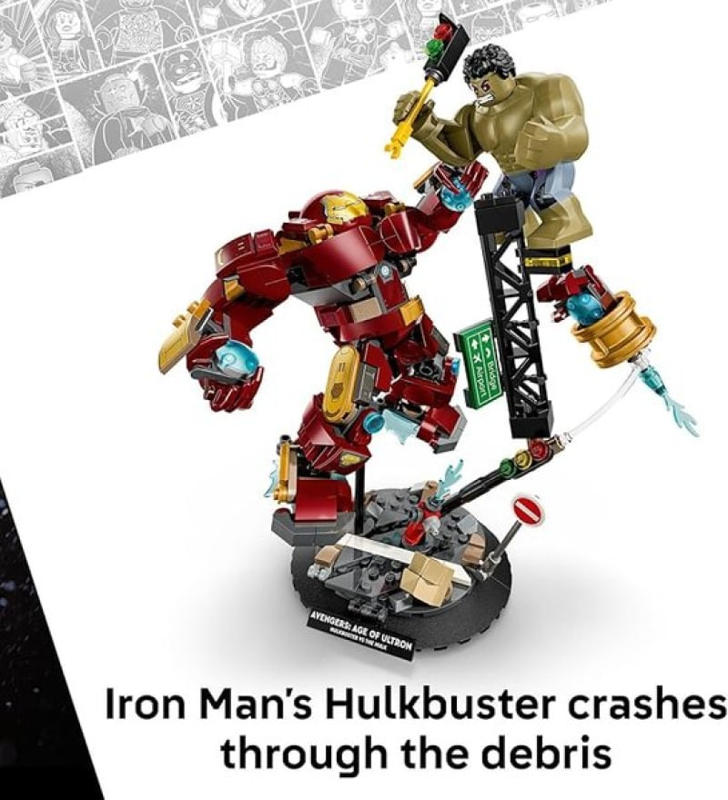 LEGO Marvel Batalha Épica: Caça-Hulk vs. o Hulk 76343 - Dê vida à ação de Vingadores: Era de Ultron à vida com o conjunto de construção LEGO® | Marvel Batalhas Épicas: Caça-Hulk vs. o Hulk (76343) para crianças maiores de 9 anos. Com as minifiguras do Homem de Ferro e do Hulk, além da icônica armadura Caça-Hulk, este conjunto de construção deslumbrante oferece às crianças oportunidades infinitas para brincadeiras imaginativas e exibições criativas. O Homem de Ferro combate o Hulk, com a ajuda de sua armadura Caça-Hulk, em meio a uma cena de rua cheia de detritos, estruturas de aço em colapso e um semáforo que o Hulk pode usar como arma. A Caça-Hulk é totalmente articulada para permitir infinitas poses. Com uma base resistente e placa de identificação, as crianças podem usar seu modelo para decorar um quarto ou usar as minifiguras para criar suas próprias aventuras de Super-heróis. Este conjunto é uma ótima ideia de presente e, com o aplicativo LEGO Builder, as crianças podem construir com confiança: ampliando e girando em 3D e acompanhando o progresso delas com instruções digitais fáceis de seguir. O conjunto de construção 413 peças. Características Gerais do Produto: • Faixa Etária: 5 a 13 anos de idade • Faixa Etária: +9 • Marca: Lego • Material: Plástico Acompanha o produto: • 413 Blocos de Montar • 1 Manual de Montagem. Garantia: • 7 dias de garantia