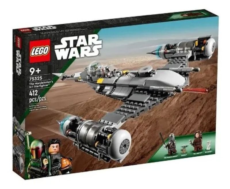Lego 75325 Star Wars- O Starfighter N1 Mandaloriano -412 Peças Os contos de Tatooine de Star Wars, O Livro de Boba Fett tornado realidade para as crianças com este modelo de peças LEGO do Starfighter N 1 do Mandaloriano 75325. Tem cockpit para uma minifigura, espaço de passageiro para Grogu, compartimento de carga, um disparador acionado por mola e detalhes realistas. Um presente divertido para crianças a partir dos 9 anos, este brinquedo de construção contém minifiguras LEGO do Mandaloriano e de Peli Motto, e também as figuras LEGO de Grogu ,carinhosamente conhecido pelos fãs como Bebê Yoda e um droide BD para inspirar brincadeira criativa de encenação. Idade acima de 9 anos Contem 412 peças Tamanho da embalagem 38 x 26 x 6 cm Fabricante Lego