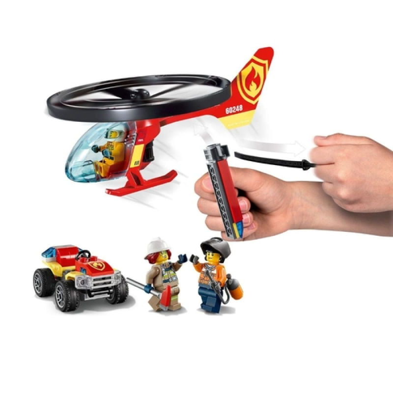 Um incrível conjunto de construção para crianças que adoram brinquedos de ação, este conjunto Lego City Fire Helicopter Response (60248) apresenta um helicóptero de cordão que realmente voa, além de um Atv de resposta e um cenário de incêndio. Diversão repleta de ação espera, com um helicóptero voador, um Atv de resgate e um cano em chamas, além de 3 minifiguras, incluindo um piloto de bombeiro, trabalhador propenso a acidentes e o chefe dos bombeiros. Quando construído, o helicóptero de brinquedo mede mais de 6 cm de altura, 19 cm de comprimento e 12 cm de largura, enquanto o Atv mede mais de 4 cm de altura, 8 cm de comprimento e 4 cm de largura. Imagens meramente ilustrativas.