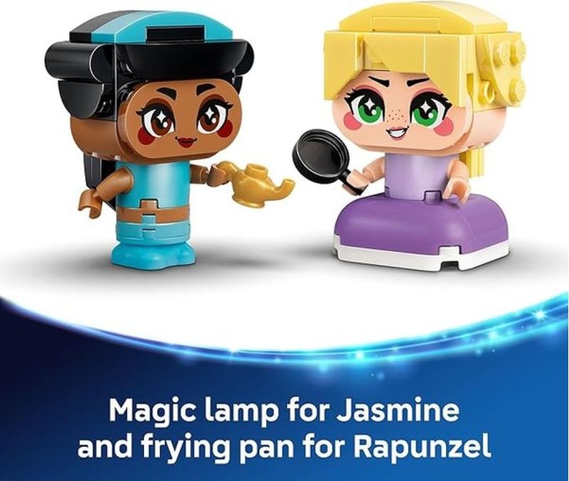 LEGO Disney Princess Mini Jasmine e Rapunzel 43303 - Agrade crianças maiores de 5 anos com este conjunto de construção LEGO® Disney Princess Mini Jasmine e Rapunzel (43303). As personagens dos filmes, Jasmine e Rapunzel, foram feitas para despertar histórias e brincadeiras com a lâmpada mágica e frigideira incluídas. Cada personagem tem braços móveis e pode segurar um acessório. Esta é uma exibição adorável perfeita e parte de uma série colecionável maior que inclui outros personagens Disney Princess construídos com peças. Realize a paixão de meninas e meninos pelos personagens Disney Princess com um conjunto de construção que serve como uma ideia de presente adorável em qualquer ocasião para crianças, e funciona de maneira encantadora com outros conjuntos LEGO | Disney (vendidos separadamente). As crianças também ganham uma aventura de construção fácil e intuitiva no aplicativo LEGO Builder, ampliando e girando com instruções em 3D, salvando e acompanhando seu progresso. Contém 59 peças. Características Gerais do Produto: • Faixa Etária: 5 a 13 anos de idade • Faixa Etária: +5 • Marca: Lego • Material: Plástico Acompanha o produto: • 59 Blocos de Montar. Garantia: • 7 dias de garantia