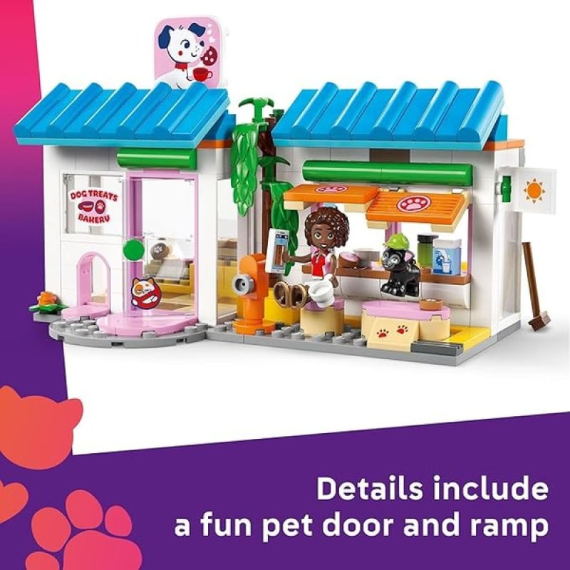 LEGO Friends Padaria de Guloseimas Caninas 42677 - Inspire as crianças a criarem suas próprias histórias doces com o conjunto LEGO® Friends Padaria de Guloseimas Caninas (42677) para meninas e meninos maiores de 6 anos. A padaria está cheia de detalhes engraçados e acessórios para agradar aos apaixonados por animais de estimação. Descubra um forno, cafeteira, geladeira e assentos, além de vários detalhes pet friendly, como sinalizações divertidas, uma transportadora e porta para animais. Há até uma rampa até o balcão para que os filhotes possam ajudar a atender os clientes! Este conjunto lúdico inclui 2 minibonecas, 4 cães e vários acessórios para animais, permitindo que as crianças preparem muita diversão. Detalhes incluem um cardápio, donuts, cookies, petiscos para cachorro, um osso, leite, copos e muito mais. Este conjunto LEGO de padaria é um excelente presente para meninas, meninos e apaixonados por animais de estimação. Com o aplicativo LEGO Builder, as crianças desfrutam de uma aventura de construção intuitiva, onde podem ampliar e girar conjuntos usando instruções em 3D, salvar seus conjuntos e acompanhar seu progresso. O conjunto contém 278 peças. Características Gerais do Produto: • Faixa Etária: 5 a 13 anos de idade • Faixa Etária: +6 • Marca: Lego • Material: Plástico Acompanha o produto: • 278 Blocos de Montar. Garantia: • 7 dias de garantia