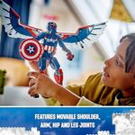 LEGO Marvel Figura de Construção do Novo Capitão América 76296 - Coloque a ação dos filmes da Marvel nas mãos de jovens Super-heróis com a LEGO® Marvel Figura de Construção do Novo Capitão América (76296) autenticamente detalhada totalmente articulada para crianças maiores de 8 anos. Nesta encarnação do supersoldado da Marvel, o Falcão assume o papel do Capitão América, dando uma dimensão adicional à brincadeira das crianças. Este brinquedo construível de Super-herói mede cerca de 28 cm de altura e conta com articulações móveis nos ombros, braços, quadril e pernas, que permite fazer poses de ação realistas enquanto as crianças mergulham em brincadeiras imaginativas. Grandes asas são conectadas às costas da figura. As asas dobram para imitar o bater delas e podem ser removidas com facilidade quando a ação voltar ao chão. A figura do Capitão carrega seu escudo icônico e conta com um drone Redwing para construir fixado às suas costas, que crianças podem tirar com facilidade para brincadeiras independentes. Para mais diversão digital, os construtores podem ampliar, girar conjuntos em 3D e acompanhar seu progresso usando o aplicativo LEGO Builder divertido e intuitivo. Características Gerais do Produto: • Faixa Etária: 5 a 13 anos de idade • Faixa Etária: +8 • Marca: Lego • Material: Plástico Acompanha o produto: • 359 Blocos de Montar. Garantia: • 7 dias de garantia