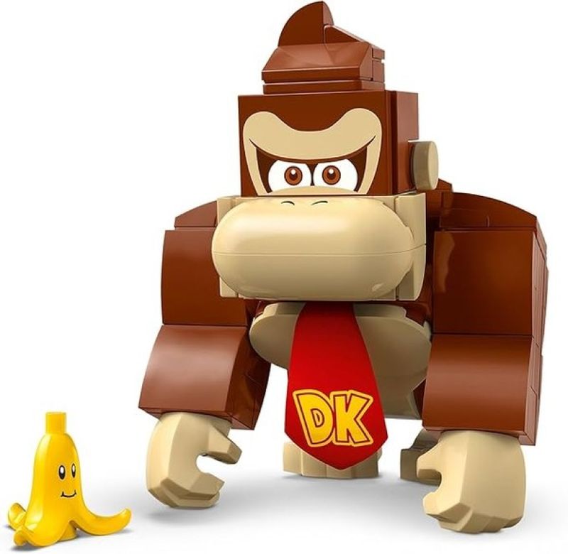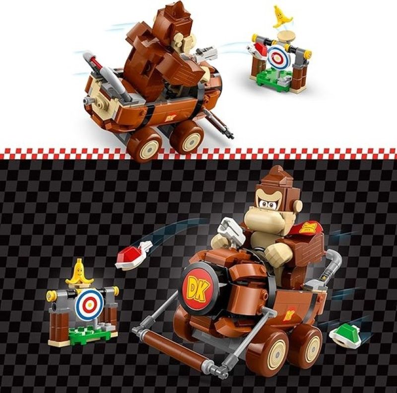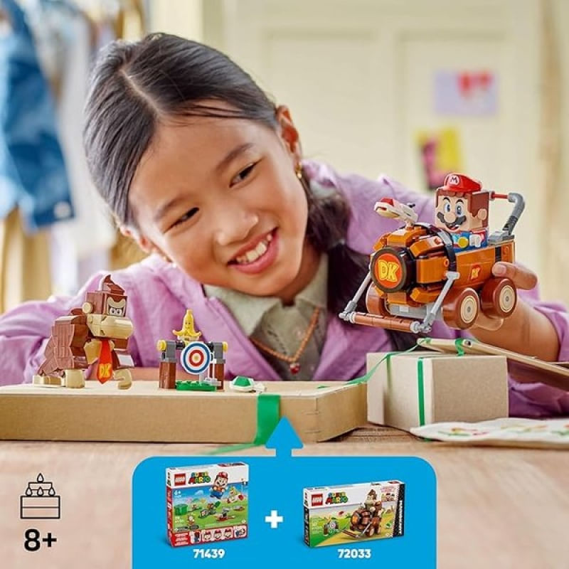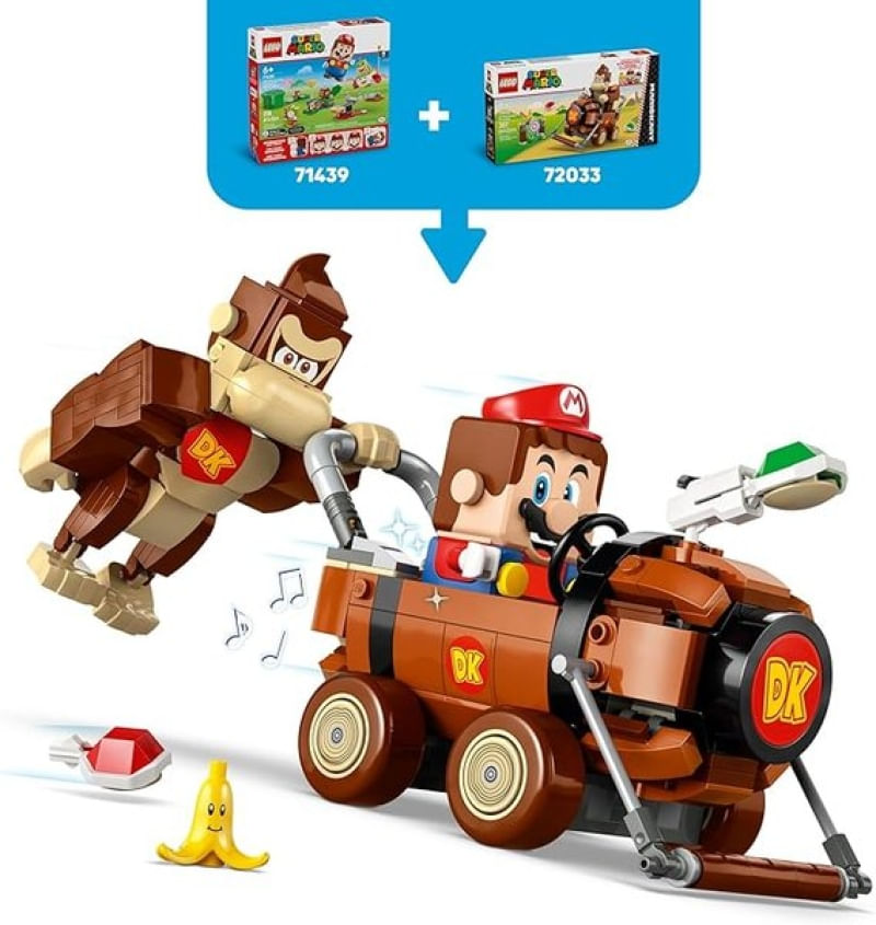 LEGO Super Mario Mario Kart Donkey Kong e DK Jumbo 72033 - Junte-se ao Donkey Kong para aventuras pilotando em Mario Kart™ com este kit de brinquedo colecionável da Nintendo® para crianças (72033). Uma fantástica ideia de presente de aniversário LEGO® Super Mario™ para meninos, meninas e jogadores maiores de 8 anos, o conjunto inclui um veículo DK Jumbo construído com peças, uma figura do Donkey Kong e um alvo, além de um elemento de banana com decoração de rosto. Ajude o Donkey Kong a pilotar o DK Jumbo e acerte o alvo disparando cascos do kart para derrubar a banana do topo. Pilote o veículo DK Jumbo com uma figura de LEGO® Mario™, LEGO® Luigi™ ou LEGO® Peach™ (dos conjuntos 71439, 71440 ou 71441, vendidos separadamente) para brincadeiras interativas, incluindo efeitos sonoros/visuais de Donkey Kong™ e sons de Mario Kart para iniciar a corrida, buzinar, fazer drift e muito mais. Encontre instruções de construção para este conjunto da Nintendo na caixa ou no aplicativo LEGO Super Mario. Amplie a diversão com outros veículos legais e personagens icônicos da linha (conjuntos vendidos separadamente). Características Gerais do Produto: • Faixa Etária: 5 a 13 anos de idade • Faixa Etária: +8 • Marca: Lego • Material: Plástico Acompanha o produto: • 387 Blocos de montar • 1 Manual de Montagem. Garantia: • 7 dias de garantia