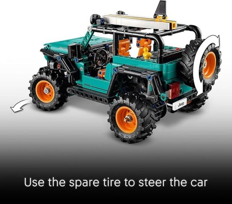 LEGO Technic SUV Jeep Wrangler Rubicon 42227 - Inspire aventuras em estradas abertas para crianças maiores de 10 anos com este LEGO® Technic SUV Jeep® Wrangler Rubicon (42227). Meninos e meninas podem explorar todos os recursos deste kit de modelo de carro realista, como a direção, suspensão e motor V6. Assim como o Jeep do mundo real, esta versão modelo é cheia de personalidade, fazendo deste um presente divertido para apaixonados por carros. Observe detalhes divertidos, como o pato para fazer ducking, uma tradição em que fãs colocam um pato de borracha em outros carros da Jeep. O carro também inclui uma prancha de surf removível e um capô que abre com um bastão de suporte. Os conjuntos LEGO Technic contam com movimentos e mecanismos realistas que apresentam jovens construtores de LEGO ao universo da engenharia de maneira acessível e realista. As crianças podem construir com confiança usando o aplicativo LEGO Builder! Amplie e gire em 3D e acompanhe o progresso com instruções digitais fáceis de seguir. O conjunto contém 723 peças. Características Gerais do Produto: • Faixa Etária: Normalmente adolescentes ou adultos • Faixa Etária: +10 • Marca: Lego • Material: Plástico • Registro Inmetro: 005828/2021 Acompanha o produto: • 723 Blocos de Montar • 1 Manual de Montagem. Garantia: • 7 dias de garantia