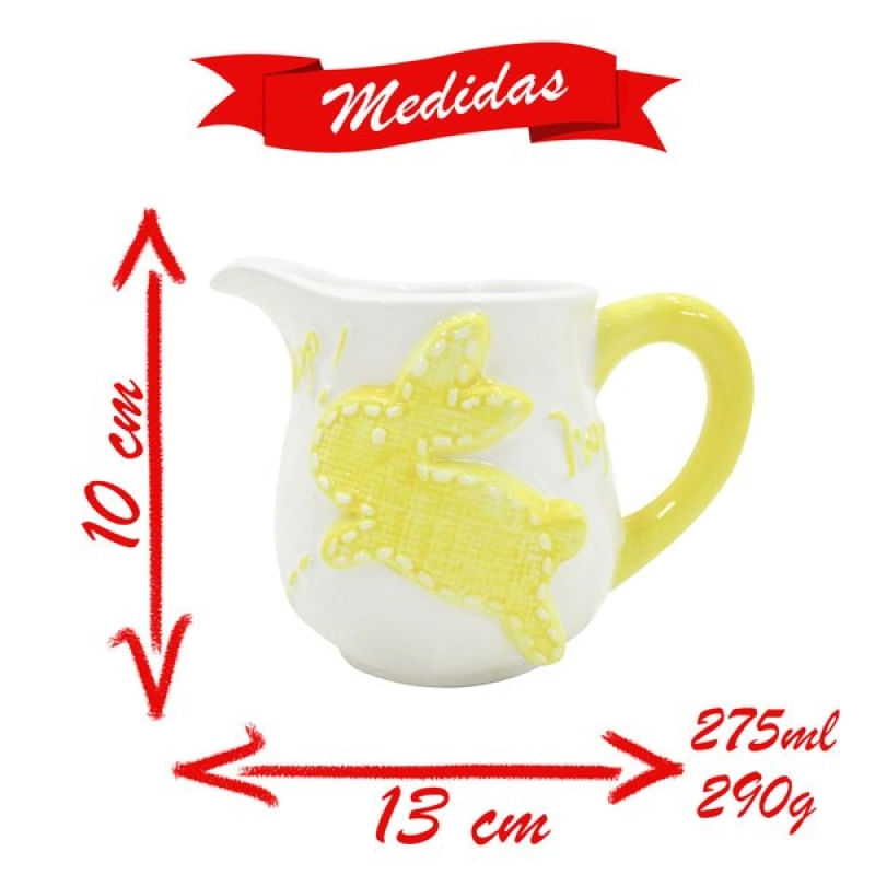 Leiteira de Coelhinho da Páscoa Amarelo Em Cerâmica - 275ml - Excelente opção para utilizar ou presentear quem você ama ou decorar sua mesa para a páscoa. Leiteira Material: Cerâmica Medidas: Altura: 10cm Capacidade: 275ml Cor: Amarelo Características Gerais do Produto: Garantia: • Garantia do site - 1 Mês