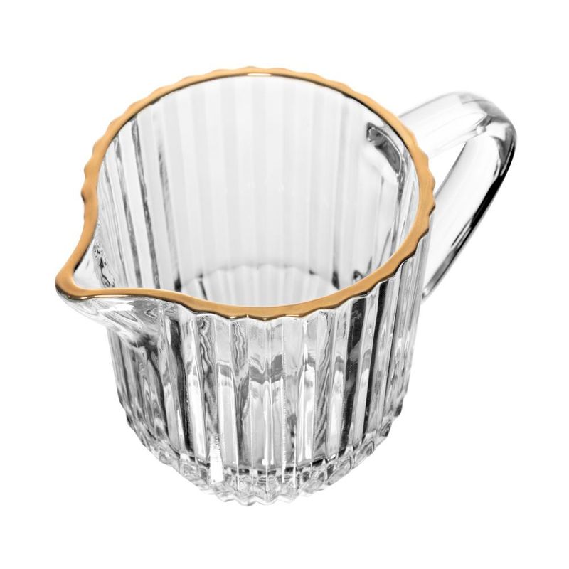 Leiteira Wolff Império de Cristal com Fio de Ouro 220mlAdicione um toque de luxo e sofisticação à sua mesa com a Leiteira de Cristal com Fio de Ouro Império da Wolff. Esta leiteira combina a beleza do cristal com o requinte do fio de ouro, proporcionando uma experiência de servir memorável.Por que escolher a Leiteira de Cristal com Fio de Ouro ImpérioElegância ExcepcionalCom seu design refinado e detalhes luxuosos, esta leiteira é uma peça de destaque em qualquer mesa. O cristal transparente revela o conteúdo com clareza, enquanto o fio de ouro adiciona um toque de opulência e sofisticação.Capacidade IdealCom capacidade para 220ml, a leiteira é perfeita para servir leite em porções adequadas. Seu tamanho compacto é ideal para ocasiões íntimas ou para uso pessoal, garantindo uma experiência de servir refinada.Material de Alta QualidadeFabricada em cristal de alta qualidade, esta leiteira é resistente e durável. O cristal proporciona uma aparência brilhante e transparente, realçando a beleza do líquido que contém.Versatilidade e PraticidadeAlém de servir leite, a leiteira pode ser utilizada para molhos, caldas e outras bebidas ou líquidos. Seu bico permite um despejo preciso e sem gotejamento, proporcionando praticidade no momento de servir.Fácil de LimparA leiteira é fácil de limpar e pode ser lavada à mão com água morna e sabão suave. Seu design simples facilita a manutenção e conservação da peça ao longo do tempo.Com a Leiteira de Cristal com Fio de Ouro Império da Wolff, você eleva a experiência de servir e encanta seus convidados com estilo e elegância.Wolff. A melhor experiência em receber, servir e decorar!Contém: 1 LeiteiraLava Louça: NãoMicroondas: NãoForno: NãoFogão: NãoFreezer: NãoMedidas Produto: Altura 8,00cm x Largura 7,80cm x Comprimento 13,48cmPeso: 0,23KgCor: IncolorMaterial: CristalLavar com detergente neutro, esponja macia e secar imediatamente.