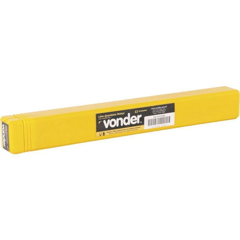 Lima Quadrada Murça 8'' VonderMarca:VonderConteúdo da Embalagem:1 LimaAplicações e dicas de uso:Indicada para desbastar metais com superfícies planas, ranhuras, cantos e rasgos de chaveta. Dureza: 58-62 HRC.Destaques e diferenciais:Possui picado duplo e corte fino que proporciona melhor acabamentoCaracterísticas Técnicas:Comprimento da lima: 8 - 203 mm Tipo do cabo da lima: Sem cabo Perfil da lima: Quadrada Tipo do picado da lima: Duplo - MURÇA Garantia - E (CDC): Garantia legal: 90 dias NA