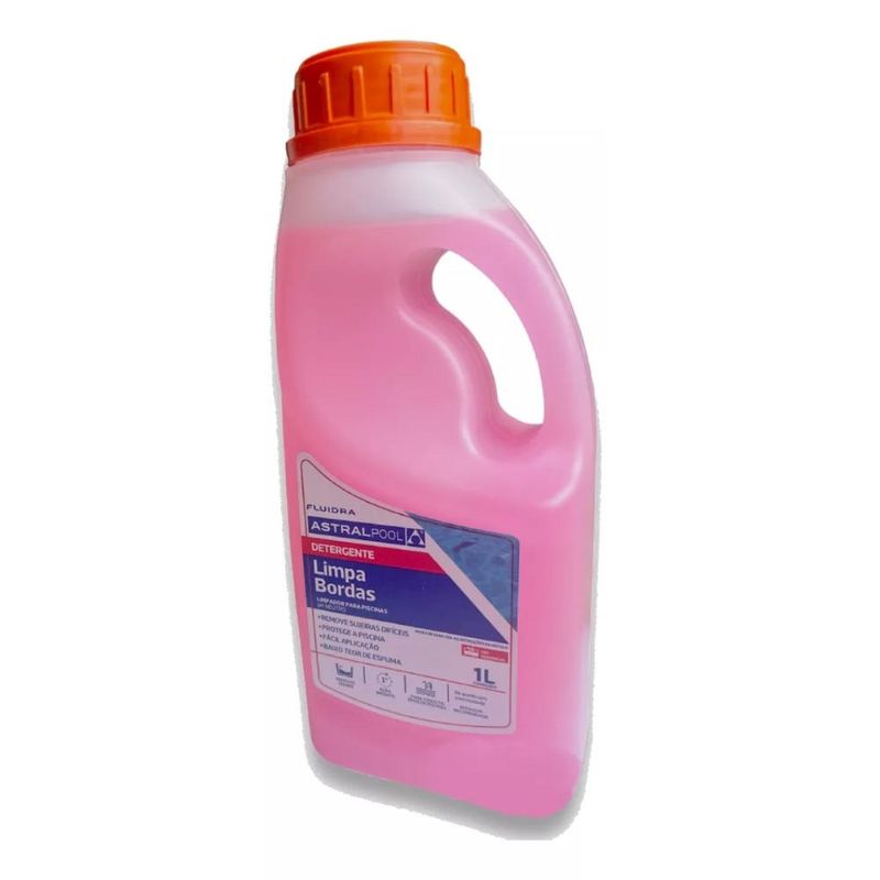 Limpa Bordas Detergente para Piscinas 1 Litroé um detergente com baixo teor de espuma, pH controlado e especialmente formulado para limpar profundamente as bordas de piscinas com máxima eficácia.combina perfeitamente praticidade com alta qualidade, eliminando sujidades que servem de abrigo e alimento para todas as espécies de microorganismos, além de devolver o aspecto de beleza e limpeza à borda da piscina.Item Incluso:- 1 Limpa Bordas