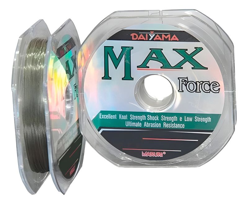 LINHA DE PESCA MAX FORCE - 0,40MM MONOFILAMENTO A Max Force é uma monofilamento 100% nylon, é considerada pelos pescadores uma das melhores linhasdisponíveis no mercado. Pois é muito resistente à abrasão, à nós e possui alta força de tração. Possui baixa memória e pouco elasticidade. Usado em pescarias de alto nível em água salgada ou doce. Carreteis de 100m CARACTERÍSTICAS: - Origem: Japão - Fabricante: Maruri - Modelo: Dayama Max Force - Tamanho: N5,5 - Diâmetro: 0,40 mm - Resistência: 41 lbs (18,8 kg) - Cor: Verde Escuro - Uso: Carretilhas e Molinetes - Carretel: 100 metros cada