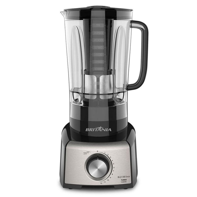 Liquidificador Britânia BLQ1380P Pro Maxx 6 Inox 3L 1200W 220VO Liquidificador Britânia BLQ1380P Pro Maxx 6 Inox 3L 1200W deixa suas misturas mais homogêneas e saborosas, graças a sua alta capacidade de 3 litros. Prepare delícias para amigos e familiares!Tecnologia Pro Maxx 66 lâminas com altíssimo poder de trituração não deixando nenhum pedacinho por inteiro, triturando e deixando tudo mais homogêneo.Função IcePara preparar raspadinhas, smoothies triturando gelo com maior facilidade e rapidez 12 velocidades + funções 12 diferentes velocidades para você encontrar a que mais se adapta ao seu preparo. Além da Função Pulsar, que ajuda a controlar o nível de trituração do preparo e auxiliar na Limpeza, com Função Auto Limpeza.Copo de grande capacidade e resistência Copo super-resistente com capacidade útil de 2 litros. E acompanha filtro que separa o suco das sementes e bagaço Sobretampa dosadora com graduação Para ingredientes na medida certa e se esquecer de algum, basta tirar a sobretampa e adicionar durante o preparo.Principais Características- 12 velocidades + Função Pulsar + autolimpeza + ice- Conjunto de facas integradas ao copo que impede vazamentos- Tecnologia Pro Maxx 6: Faca de 6 lâminas- Potência de 1200W- Copo com 3L de capacidade total e capacidade útil de 2L- Tampa com sobretampa- Acompanha filtro- Base antiderrapante- Porta fio- Acabamento da face frontal em aço inox.Observação: Somente faturamos para o nosso consumidor final, ou seja, não faturamos pedidos para CNPJ por este portal de vendas.Especificações TécnicasMarca: BritâniaModelo: BLQ1380PCor: PretoPotência: 1200 WCapacidade do copo: 3 LVelocidades: 12Estado: NovoFunção Ice: SimAcompanha filtro: SimMaterial do copo: PlásticoFunção pulsar/autolimpeza: SimSobretampa: SimQuantidade de lâminas: 6Tipo das lâminas: Lisas e serrilhadasAltura do produto: 42 cmLargura do produto: 22 cmComprimento do produto: 22,22 cmPeso do produto: 1,997 kgAltura com embalagem: 25,7 cmLargura com embalagem: 33,1 cmComprimento com embalagem: 22,9 cmPeso com embalagem: 2,233 kgGarantia: 360 Dias