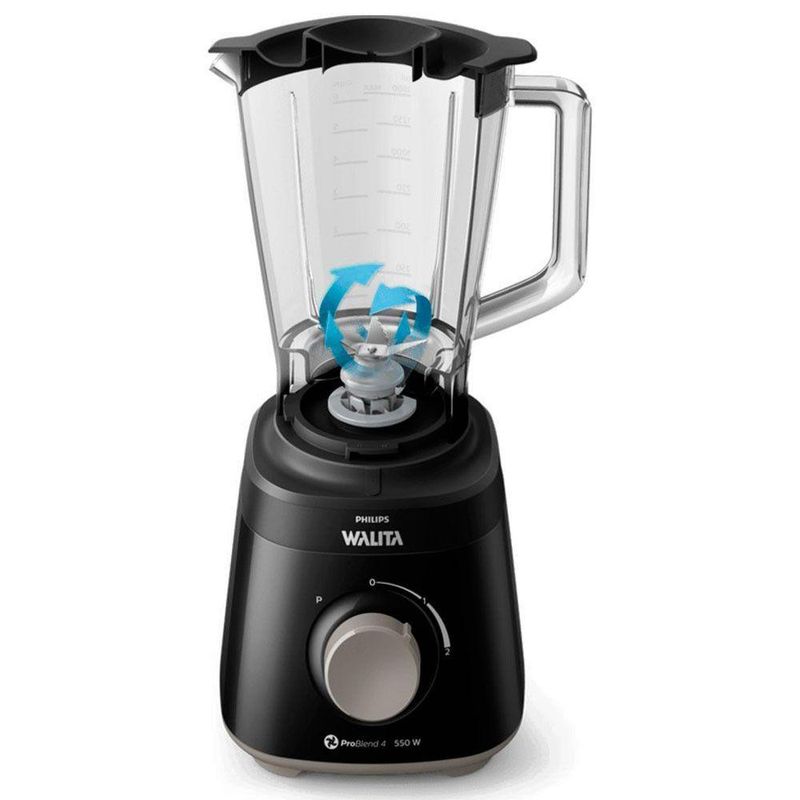 Liquidificador Daily 550w Ri2110 Philips Walita Preto 220vApresentamos o Liquidificador Daily 550W RI2110 da Philips Walita para receitas saborosas e praticas. Com tecnologia PROBLEND 4, suas 4 laminas de aco inox serrilhadas e jarra polipropileno. Conta com 2 velocidades mais funcao pulsar e capacidade total do copo de 2 litros, sendo a capacidade util de 1,5 litros com motor de 550W para um desempenho excelente e sem esforco no preparo de suas receitas favoritas.Caracteristicas: Marca: Philips Walita Modelo: Daily Capacidade Total: 2 Litros Capacidade Util: 1,5 Litros Potencia: 550W Velocidade: 2 e Pulsar RPM (max.): 23000 rpm Frequencia: 50-60Hz Lamina: 4 laminas fixas Pulsar: Sim Motor Reversivel: Nao Trava de Seguranca: Sim Base Antiderrapante: Sim Tecnologia: ProBlend Filtro: Nao Material: Plastico Tamanho do Fio: 80 cm Selo Inmetro: UL-BR 21.1957 Dimensoes: Altura: 38,5 cm Largura: 18,3 cm Profundidade: 17,5 cm Peso: 1,24 kg Garantia do fornecedor: 24 meses pelo Fabricante (Contra defeitos de Fabricacao). Observacoes: A do seu produto esta condicionada a disponibilidade deste servico a CEPs selecionados, definidos pela loja atraves da analise do CEP informado no momento da compra. O valor e/ou a gratuidade deste servico serao informados no campo Calcular e Prazo com o preenchimento do CEP do local de . Na limpeza nao utilizar produtos quimicos e abrasivos, usar apenas com pano umedecido ou lavagem a seco (recomenda-se um ), para garantir a maior durabilidade do movel. Os objetos que ambientam as fotos nao acompanham o produto. Imagens meramente ilustrativas. Cores e tonalidades podem variar. Ao receber a mercadoria, o cliente deve verificar as condicoes da embalagem, caso haja alguma avaria nao assine comprovante de recebimento. A desmontagem e outras instalacoes serao de responsabilidade do cliente. Nao nos responsabilizamos, no ato da , por subir escadas/elevadores ou pelo transporte por guincho em apartamentos. Eventuais despesas sao de responsabilidade do comprador. Confira as dimensoes do produto e certifique-se de que passara normalmente por supostos elevadores, portas, escadas e/ou corredores de sua residencia.