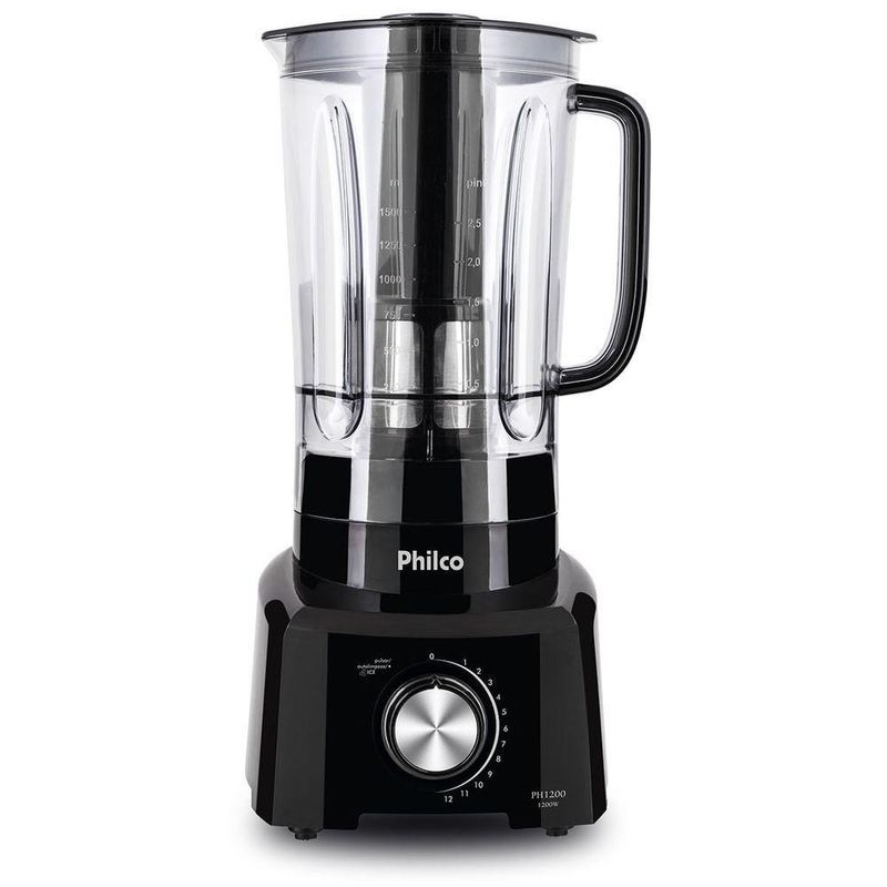 Liquidificador Philco PH1200 Preto 1200W 220VO Liquidificador Philco PH1200 Preto 1200W possui 12 velocidades + pulsar / autolimpeza, ideal para preparar vitaminas, molhos, sopas cremosas e muito mais!Com 1200W de potência e função ice, ele tritura gelo com maior facilidade e rapidez, além da faca com 6 lâminas ultra afiadas e resistentes deixam as misturas muito mais homogêneas e sem nenhum pedacinho para trás.Sua tampa é com sobretampa e orifício, permite adição de ingredientes durante o preparo. Copo super-resistente com capacidade máxima de até 3L, suas receitas prediletas na quantidade perfeita. O O Liquidificador Philco PH1200 acompanha filtro que separa o suco da semente e do bagaço. E para sua maior comodidade, possui base antiderrapante, garantindo maior segurança no manuseio.- Chave eletrônica 12 velocidades + pulsar/autolimpeza- Copo com facas integrado de 6 lâminas- Alça do copo anatômica- Tampa com sobre tampa- Base antiderrapante- Porta fio.Especificações Técnicas:Marca: PhilcoCor: PretoPotência (W): 1200Capacidade do copo: 3 LGarantia (Dias): 360Velocidades: 12Modelo: PH1200Estado: NovoFunção Ice: SimAcompanha filtro: SimMaterial do copo: SANFunção pulsar/autolimpeza: SimSobretampa: SimQuantidade de lâminas: 6Observação: Somente faturamos para o nosso consumidor final, ou seja, não faturamos pedidos para CNPJ por este portal de vendas;