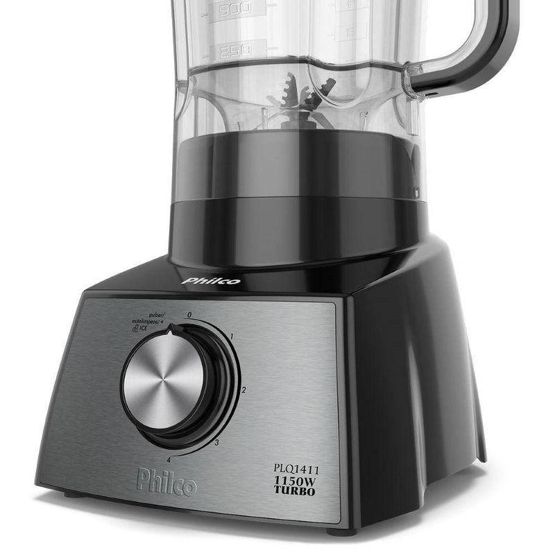 Liquidificador Plq1411 1150W Philco Inox 2,7l 110VCódigo do Fornecedor: 103101163Marca: PhilcoConteúdo da embalagem: 1 Liquidificador PLQ1411 1150W Philco Inox 2,7L Com Lâminas em Aço Inox 110VLiquidificador Philco PLQ1411P: Potência e Versatilidade para Suas ReceitasO Liquidificador Philco PLQ1411P é a combinação perfeita de design moderno e potência, proporcionando resultados excepcionais em suas preparações culinárias. Com 4 velocidades e diversas funções, é o aliado ideal para uma variedade de receitas.Potência e Eficiência:Com 1150W de potência, triture e misture os alimentos com máxima eficiência, garantindo resultados perfeitos a cada uso.Versatilidade de Velocidades e Funções:Com 4 velocidades diferentes, além das funções pulsar e ice, você tem controle total sobre o processo de preparo, adaptando-se a cadanecessidade culinária. A função auto limpeza facilita a higienização do liquidificador, garantindo praticidade no seu dia a dia.Lâminas Afiadas e Resistentes:O conjunto de facas com 4 lâminas proporciona uma trituração eficiente e uniforme dos alimentos, garantindo resultados homogêneos em suas receitas.Copo de Alta Capacidade e Praticidade:O copo em polipropileno tem capacidade total de 2,7L e útil de 1,5L, oferecendo espaço suficiente para preparar grandes quantidades de alimentos. A tampa com sobretampa e orifício permite a adição de ingredientes durante o preparo, sem interromper o processo.Outras Características:Filtro para garantir bebidas mais suaves.Base antiderrapante para maior estabilidade durante o uso.Porta fio para facilitar o armazenamento.Prepare suas receitas favoritas com facilidade e praticidade com o Liquidificador Philco PLQ1411P. Potente, versátil e fácil de limpar, é a escolha ideal para sua cozinhaGarantia: 12 meses NA