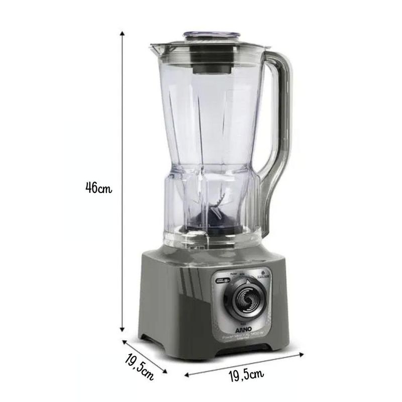 Liquidificador Power Max XXL 1400W 220V Cinza LN55XBB2 LN87Conheça o liquidificador Arno Powermax 1400W XXL! Ideal para preparos para toda família, graças a maior capacidade útil do mercado (2,25L), maior potência combinada com as 6 lâminas Powelix Pro para preparar as receitas mais difíceis.Exclusiva tecnologia AutoLOCK ANTI VAZAMENTO que garante o rosqueamento completo das lâminas, tendo resultados perfeitos sem vazamento.Jarra de San Cristal com 2,25L Maior capacidade útil do mercado, facilitando o preparo de receitas para toda a família.Além disso tem facilidade na hora de limpar, com lâminas removíveis para melhor limpeza do produto. Especificações:Marca: Arno Modelo: LN55XBB2 LN87 Cor: Cinza Esverdeado Voltagem: 220v Potência: 1400w Medidas Aproximadas AxLxP : 46x19,5x19,5cm