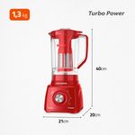 Com 550W de potência, copo de 2,2 l, além de 3 velocidades + pulsar, função autolimpeza e tampa com medidor, o Power Turbo L-99-FR é um liquidificador vermelho, de montagem rápida e prática. Com potência de 550W, ele tem melhor desempenho nas receitas do dia a dia, como sucos, vitaminas, bolos, sopas e patês. Seu copo de 2,2 l é ultrarresistente a quedas e riscos e não pega cheiro. Ele tem 3 velocidades + pulsar, para uma mistura mais rápida. E ele ainda tem a função autolimpeza, facilitando na hora de limpar! Graças ao seu filtro, entra a fruta, coa e sai o suco ou molho pronto, sem semente. A tampa tem um medidor de 40 ml removível, para você adicionar ingredientes sem desligar. Já a base antiderrapante traz mais segurança e seu guarda-fio faz o liquidificador caber perfeitamente no seu armário. O Liquidificador Power Turbo L-99-FR foi desenvolvido para uso doméstico, sendo melhor para uso residencial. Tudo isso com 1 ano de garantia Mondial.