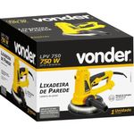 Lixadeira De Parede Com Led 750 Wats 110V Lpv750 VonderAplicações e dicas de usoPossui motor com dupla isolação, velocidade variável, aba da capa de proteção removível, facilitando o lixamento de cantos e luz de LED para melhor iluminação da área a ser trabalhada. Seu tamanho e peso reduzidos, facilitam ainda mais o trabalho em locais com pouco espaço. Principal diferencial deste produto, é de que já acompanha saco coletor para pó, proporcionando maior praticidade no uso e no transporte, além de diminuir o custo total, pois não é necessário adquirir um aspirador de pó. O próprio motor da máquina, faz a sucção e empurra o pó para o saco coletor.Indicada para lixamentos em paredes e tetos de alvenaria, gesso e massa corrida. Utilizar apenas lixas com 8 furos que coincidam com a furação da máquina. Uso obrigatório da lixadeira de parede com saco de aspiração (acompanha), ou aspirador de pó adequado para aspiração de partículas finas (não acompanha).Indicada para lixamentos em paredes e tetos de alvenaria, gesso e massa corrida. Utilizar apenas lixas com 8 furos que coincidam com a furação da máquina. Uso obrigatório da lixadeira de parede com saco de aspiração (acompanha), ou aspirador de pó adequado para aspiração de partículas finas (não acompanha).Características TécnicasPotência (W): 750 W Rotação (rpm): 1500 rpm - 2700 rpm Diâmetro indicado da lixa: 180 mm Comprimento da lixadeira sem cabo de extensão: Não se aplica Comprimento da lixadeira com cabo de extensão: Não se aplica Tensão (V): 110V~ Produto: Lixadeira | Voltagem: 127