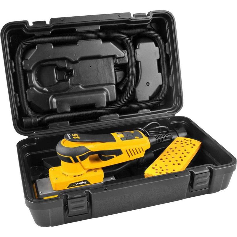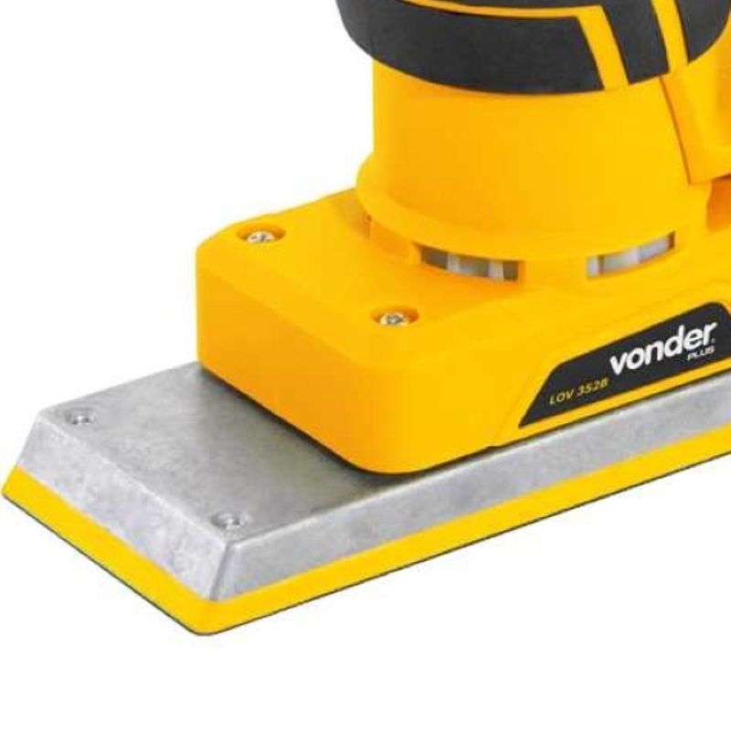 Cod. Fornecedor: 6001352510Marca: Vonder PlusConteúdo da embalagem: 1 Lixadeira Orbital. Acompanha: 2 adaptadores para aspirador, 9 lixas (1 G60/ 1 G80/ 1 G120/ 1 G180/ 1 G240/ 1 G320/ 1 G400/ 1 G600/ 1 G800) e 1 mangueira para aspirador com 3 metros.Destaques e diferenciais: Conta com formato ergonômico, proporcionando maior conforto ao operador. Possui velocidade variável em 7 níveis, com indicador digital. Conta ainda com base da lixa com sistema de fixa fácil (com pluma) e excentricidade de 2,5 mm, que garantem agilidade e melhor acabamento nos trabalhos. Possui saída para aspirador de pó e acompanha 2 adaptadores e 1 mangueira para conexão no aspirador de pó (não acompanha aspirador). Além disso, possui motor tipo Brushless (sem escova de carvão), mantendo a velocidade constante nas aplicações e garantindo maior durabilidade, resistência e desempenho.Aplicações e dicas de uso: Uso industrial. Indicado para lixamento em madeiras, drywall, massa corrida e derivados. Utilizar apenas lixas que coincidam com a furação da máquina. Uso obrigatório da lixadeira com aspirador de pó para partículas finas (não acompanha).Garantia legal: 12 mesesQualificação TécnicaModelo: LOV 352B Tipo do motor: Brushless Potência: 350 W Oscilações por minuto (opm): 4.000/min - 10.000/min Excentricidade: 2,5 mm Dimensões da base: 70 mm x 197 mm Dimensões da lixa: 70 mm x 197 mm Coletor de pó: Possui Aceleração transmitida nas mãos - braços do operador - ah: 3,22 m/s² Incerteza da aceleração transmitida nas mãos - braços do operador - k: 1,5 m/s² Segue norma: ABNT NBR IEC 60745-1 e ABNT NBR IEC 60745-2-3 Tensão (V): 127 V~ Frequência (Hz): 60 Hz Acessórios/peças que acompanham o produto: 2 adaptadores para aspirador, 9 lixas (1 G60/ 1 G80/ 1 G120/ 1 G180/ 1 G240/ 1 G320/ 1 G400/ 1 G600/ 1 G800) e 1 mangueira para aspirador com 3 metros. Massa aproximada (peso) (kg): 1,55 kg
