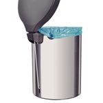 A Lixeira de pedal New 12L da Tramontina é fabricada com corpo em Aço Inox e tampa plástica. Fabricada no Brasil, foi desenvolvida pensando em garantir durabilidade, pois resiste a mais de 1 milhão de ciclos de abertura/fechamento. Ela não possui balde plástico e a fixação do saco de lixo é por meio de um orifício lateral - porém, ao fechar a tampa o saco não aparece, mantendo a estética do produto. Prática, tem capacidade para 12 L e conta com alça para transporte. Outro diferencial é que a tampa não bate na parede quando aberta