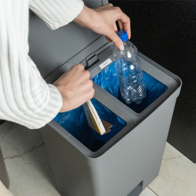 Lixeira com Pedal e Duplo Compartimento Trium Ou 30 Litros Detalhes do Produto: Promover um ambiente limpo, organizado e cheiroso é o segredo para uma sensação de satisfação e bem-estar. Por isso, é imprescindível que tenhamos sempre por perto uma lixeira que promova higiene, organização e beleza. Com design contemporâneo, moderno e minimalista, as Lixeiras de Pedal Trium foram desenvolvidas para solucionar problemas do cotidiano com mais praticidade e sustentabilidade. Com o modelo de Lixeiras Trium Duplo Compartimento, você ganha dois compartimentos com capacidade de 15 Litros cada, para separar o seu lixo de forma prática, facilitando a reciclagem. Acione a lixeira com os pés, em caso de mãos ocupadas, assim, você pode realizar suas tarefas com mais agilidade. Ou ainda é possível abertura com a mão e sem esforço, onde a tampa permanece aberta para facilitar a troca do saco de lixo. Além disso, possui tampa que não deixa o saquinho de lixo exposto na parte externa da lixeira, e o anel de fixação proporciona mais segurança ao colocar o saco para lixo, trazendo mais sofisticação ao evitar que o saco fico aparente. Feita com material de alta qualidade e acabamento fosco, a lixeira garante a estabilidade e resistência necessária para o dia a dia. Leves, práticas de transportar e fácil de higienizar, as Lixeiras Trium oferem limpeza, bem-estar e organização para a sua casa. Cuidados: Sugere-se higienizar com sabão neutro e esponja macia, evitando produtos abrasivos no processo de limpeza. Material: Polipropileno (PP) Medidas: 25,8 cm comprimento x 34 cm largura x 48,5 cm altura Itens inclusos: 1 unidade da Lixeira com Pedal e Duplo Compartimento Trium 30 Litros Garantia do fornecedor: 3 meses