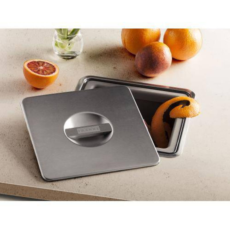 • A Lixeira quadrada de sobrepor se encaixa perfeitamente na sua cozinha. • Seu design possui capacidade de 10 litros, o tamanho ideal para o armazenamento do lixo orgânico diário. • Fácil remoção do lixo pela parte superior do produto. • Com excelente acabamento em aço inox escovado e material de alta resistência. • Um acessório para completar sua cozinha, deixando mais charmosa e moderna.