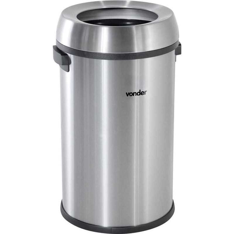 Código Fornecedor: 6356065000Marca: Vonder Conteúdo da embalagem:1 Lixeira.Destaques e diferenciais:Fabricada em aço inox, maior resistência e durabilidade. Possui base emborrachada que impede a movimentação e alças externas que facilitam o transporte, garantindo mais praticidade no uso diário.Aplicações e dicas de uso:Indicada para a coleta e armazenamento de resíduos sólidos. Ideal para uso em ambientes como cozinhas, banheiros, escritórios, áreas de serviço, entre outros. Cuidados: Para limpeza utilizar detergente neutro e uma esponja macia. Secar bem após a limpeza, não deixar água acumulada.Detalhes TécnicosCapacidade: 65 litros Formato: Redondo Tipo de tampa: Sem tampa Dimensões: 420 mm x 395 mm x 690 mm Cor da lixeira: Cinza (Inox) Material (tipo/composição): Aço Inox 410 Massa aproximada (peso) (kg): 4,0 kg Garantia - E (CDC):Garantia legal: 90 dias