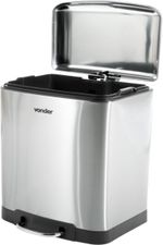 Marca: VonderConteúdo da embalagem: 1 LixeiraDestaques e diferenciais:Fabricada em aço inox 410. Possui bandeja plástica, alça plástica e abertura da tampa por pedal com sistema de amortecimento.Dicas de uso:Indicada para descarte de resíduos.Detalhes Técnicos:Capacidade: 12,0 litros Formato: Retangular Tipo de tampa: Inox, abertura por pedal Dimensões: Largura: 275 mm / Profundidade: 190 mm / Altura: 402 mm Cor da lixeira: Cinza (Inox) Material (tipo/composição): Aço Inox 410