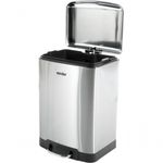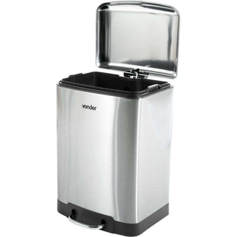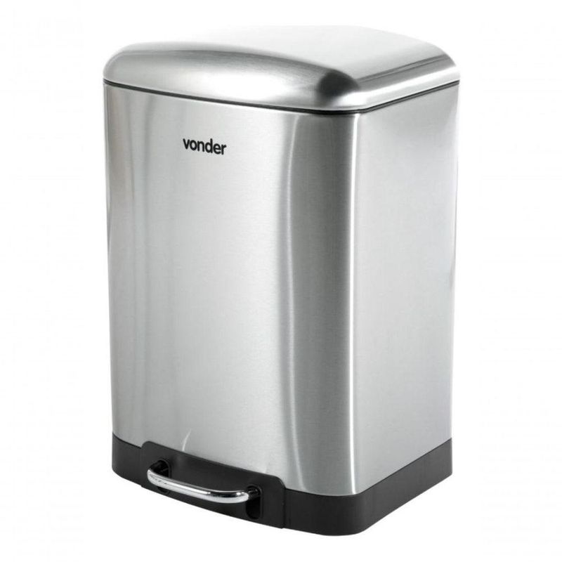 Lixeira Retangular 12 Litros Inox Cinza VonderMarca: VonderConteúdo da embalagem: 1 LixeiraDestaques e diferenciais:Fabricada em aço inox 410. Possui bandeja plástica, alça plástica e abertura da tampa por pedal com sistema de amortecimento.Dicas de uso:Indicada para descarte de resíduos.Detalhes Técnicos:Capacidade: 12,0 litros Formato: Retangular Tipo de tampa: Inox, abertura por pedal Dimensões: Largura: 275 mm / Profundidade: 190 mm / Altura: 402 mm Cor da lixeira: Cinza (Inox) Material (tipo/composição): Aço Inox 410 NA
