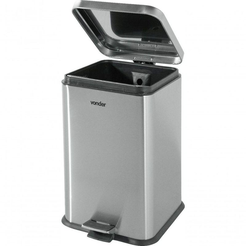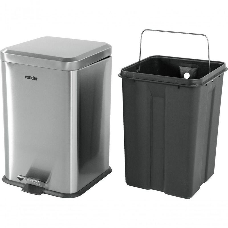 Lixeira Retangular 20l Inox VonderA Lixeira Retangular 20L Inox Vonder é a escolha perfeita para quem busca praticidade e durabilidade em um único produto. Fabricada em aço inox 410, esta lixeira combina resistência e um design moderno, ideal para diversos ambientes, como cozinhas, escritórios e banheiros. Com uma capacidade de 20 litros e formato retangular, ela se adapta facilmente a qualquer espaço, oferecendo uma solução eficiente para o descarte de resíduos.O sistema de abertura por pedal com amortecimento proporciona maior higiene e praticidade no uso diário, evitando o contato direto com a tampa. Além disso, o balde plástico interno removível com alça facilita a limpeza e o manuseio, garantindo que a manutenção da lixeira seja simples e rápida. A estrutura robusta em inox não só garante a durabilidade do produto, mas também oferece resistência à corrosão, mantendo a lixeira com aparência de nova por muito mais tempo.**ESPECIFICAÇÕES TÉCNICAS:**- Marca: Vonder- Cor: Cinza- Código universal de produto: 7893946776749- Lugar de colocação: De piso- É de embutir: Não- Material da tampa: Aço- Cor principal: Cinza- Modelo: 6356020003- MPN: 6356020003- Materiais da estrutura: Aço inoxidável- Capacidade em volume: 20 L- Tipos de aberturas: Pedal- Dimensões: 27 cm x 27 cm x 43 cm- Peso: 2,95 kg**FUNÇÕES E CARACTERÍSTICAS:**- Estrutura robusta em inox, garantindo durabilidade e resistência.- Sistema de abertura por pedal, proporcionando maior higiene e praticidade.- Balde plástico interno removível com alça para fácil limpeza.- Dimensões compactas, ideal para diversos ambientes.**ITENS INCLUSOS:**- 1 Lixeira NA
