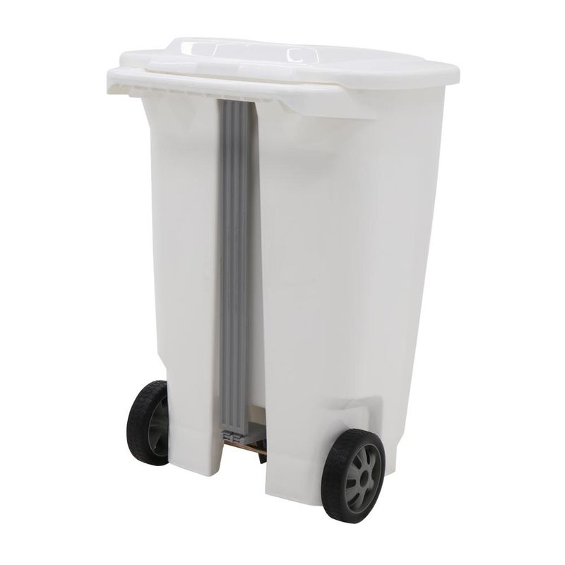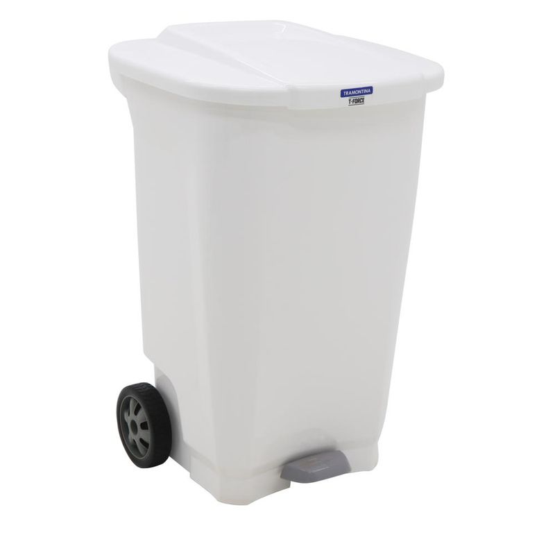 Lixeira Tramontina T-Force 100L com Rodas em Polipropileno Branco A Lixeira Tramontina T-Force 100L em Polipropileno garante praticidade para as atividades do dia a dia. Produzida em polipropileno, possui capacidade de 100 litros e características que a transformam na melhor escolha para suas necessidades. É uma lixeira articulável com superfície lisa, que facilita a limpeza. Possui tampa acionada por pedal e uma haste de acionamento resistente, que permite a mesma abertura de tampa por um longo período. Presente nos modelos com rodas e sem rodas. Volume: 100LCom RodasProduzido em Polipropileno Sacos de lixo recomendados: 300L