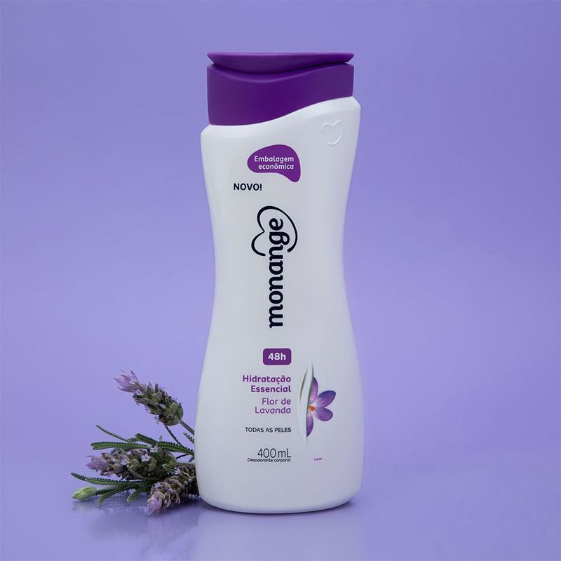 Loção Hidratante Monange Flor Lavanda 400mlLoção Hidratante Monange Flor Lavanda foi desenvolvido para nutrir as camadas da pele, sendo indicado para todos os tipos de pele. Além de ser consistente e ter uma rápida absorção, é uma ótima opção para manter sua pele saudável e hidratada ao longo do dia.