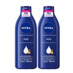 Kit Loção Deo Hidratante Nivea Milk 2 Unidades 400ml CadaA Loção Nivea Milk tem um efeito hidratante de até 48 horas, o produto recupera sua pele de dentro pra fora, possui um aroma agradável, tornando a experiência de uso mais mais prazerosa. Sua fórmula desenvolvida à base de Óleo de Amêndoas e minerais naturais, oferecendo um alto grau de hidratação intensiva, desodoriza e ajuda a reparar a pele seca a extrasseca
