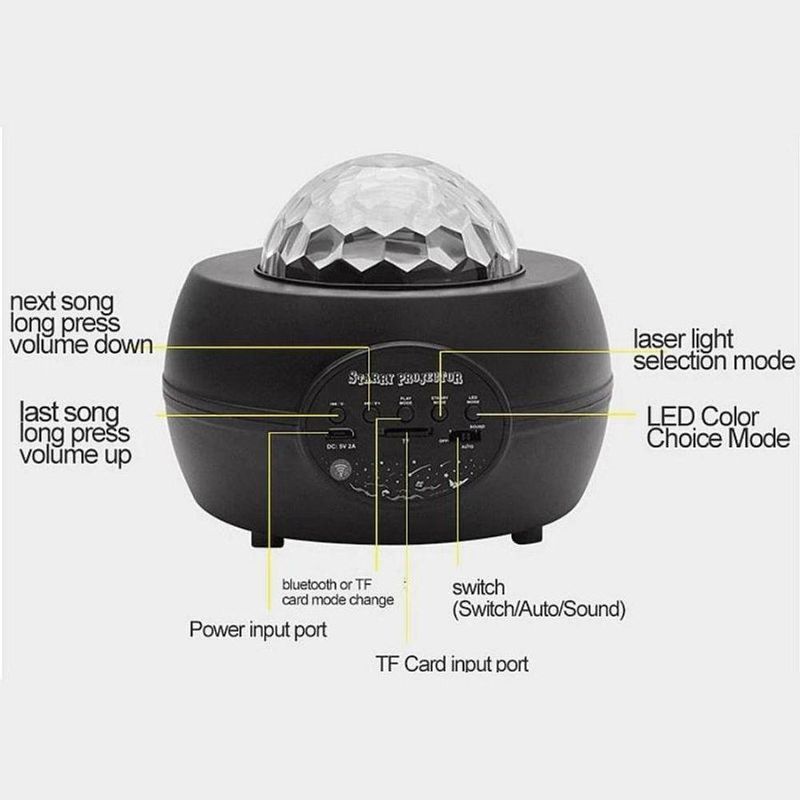 Luminaria Abajur Projetor Estrelas Galaxia Caixa De Som Bluetooth RgbLuminária Abajur Projetor Estrelas Galáxia Caixa De Som Bluetooth RGBDescrição do Produto:A Luminária Projetor de Estrelas emite luzes com cores vibrantes que se movimentam, deixando o ambiente parecendo uma galáxia! Utilize o controle remoto para mudar os modos de iluminação e conectando músicas de seu celular por Bluetooth para fazer uma festa ou deixar um clima mais romântico. Ótimo para salão de festa, quarto de criança, é compacto e perfeito para enfeitar seu cômodo.Especificações do Produto:- Cor: Preto- Dimensões Aprox.: 13 cm X 13 cm X 10,5 cm- Peso Aprox.: 220g- Material: Plástico e Componentes Eletrônicos- Tensão de Entrada: 110-220v- Tensão de Saída: 5v/2000ma- Iluminador de Led: rgb70 * 4w- Iluminador Laser: 50mw Verde- Fonte de Alimentação: Cabo USB(Powerbank/Notebook/Plugue de Parede)- Modos de Música: Cartão TF (Micro SD) / BluetoothItens Inclusos na Embalagem:- 01x Projetor Led Estrelado- 01x Controle Remoto- 01x Manual (Em Inglês)- 01x Cabo USB