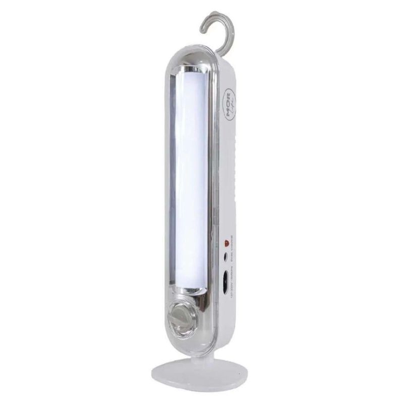Luminária Em Bastão Regarregável - 409198 - Mor Luminária em Bastão Regarregável - 409198 - MORDescrição: A Luminária Bastão Recarregável P 280 Lumens é ideal para quem busca uma luminária completa para qualquer momento. Contando com um super led que proporciona uma luz mais intensa e com maior alcance, a luminária possui botão de regulagem para intensidade da luz e alcance de 25m. A bateria dura até 6 horas na potência máxima ou 15 horas na potência mínima e leva de 20 a 24 horas para carregar. Para carregar, é preciso utilizar o plug para bateria que acompanha o produto e, ao colocar na tomada, o indicador de carregamento acenderá. Multiuso, possui base removível e gancho, possibilitando ao menos 3 maneiras de uso: de pé (com a base), acima de portas para melhor identificação (sem a base, parafusos não inclusos) ou pendurada com o gancho. A Luminária Bastão Recarregável P 280 Lumens é recarregável e possui voltagem bivolt, com bateria de 1.600mAh. * Imagens meramente ilustrativas.meli_shipping_mode - me1