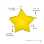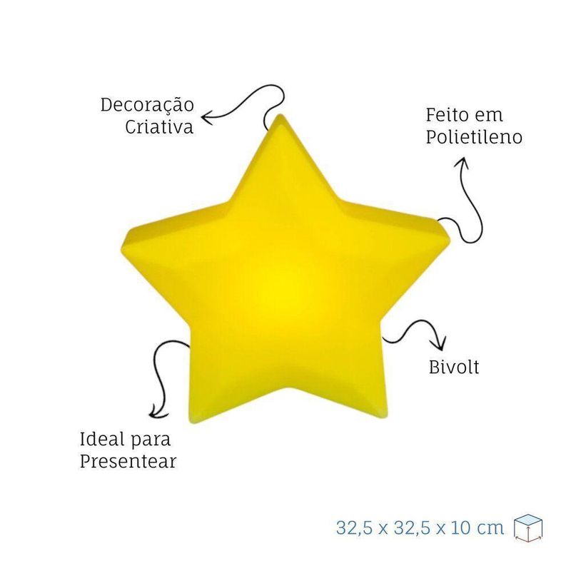Luminária Estrela Infantil Amarela Bivolt Decoração QuartoA Luminária Estrela é perfeita para quem quer adicionar um toque de luz e magia à decoração. Seu design delicado ilumina o quarto de forma suave, criando um ambiente acolhedor e cheio de boas energias. Ideal para quartos infantis, festas ou até para dar aquele charme especial em cantinhos da casa.- Design encantador: formato de estrela que combina com qualquer estilo de decoração.- Iluminação suave: perfeita para criar um clima tranquilo e aconchegante.- Bivolt automática (110/220V): fácil de usar em qualquer tomada.- Cabo com interruptor de 1,8m: praticidade no dia a dia.- Produzida no Brasil: feita em polietileno durável, com acabamento de qualidade.- Compatível com lâmpadas LED ou fluorescentes compactas até 10W (não inclusa).Especificações do produto:Cor: BrancoMaterial: PolietilenoDimensões: 32,5 x 32,5 x 10 cm (A x L x P)Tensão: Bivolt (110/220V)Cabo: 1,8 m com interruptorInstruções: Aceita alguns tamanhos de lâmpada LED, que passem pela abertura.A Luminária Estrela é perfeita para quem quer adicionar um toque de luz e magia à decoração. Seu design delicado ilumina o quarto de forma suave, criando um ambiente acolhedor e cheio de boas energias. Ideal para quartos infantis, festas ou até para dar aquele charme especial em cantinhos da casa.- Design encantador: formato de estrela que combina com qualquer estilo de decoração.- Iluminação suave: perfeita para criar um clima tranquilo e aconchegante.- Bivolt automática (110/220V): fácil de usar em qualquer tomada.- Cabo com interruptor de 1,8m: praticidade no dia a dia.- Produzida no Brasil: feita em polietileno durável, com acabamento de qualidade.- Compatível com lâmpadas LED ou fluorescentes compactas até 10W (não inclusa).Especificações do produto:Cor: BrancoMaterial: PolietilenoDimensões: 32,5 x 32,5 x 10 cm (A x L x P)Tensão: Bivolt (110/220V)Cabo: 1,8 m com interruptorInstruções: Aceita alguns tamanhos de lâmpada LED, que passem pela abertura.